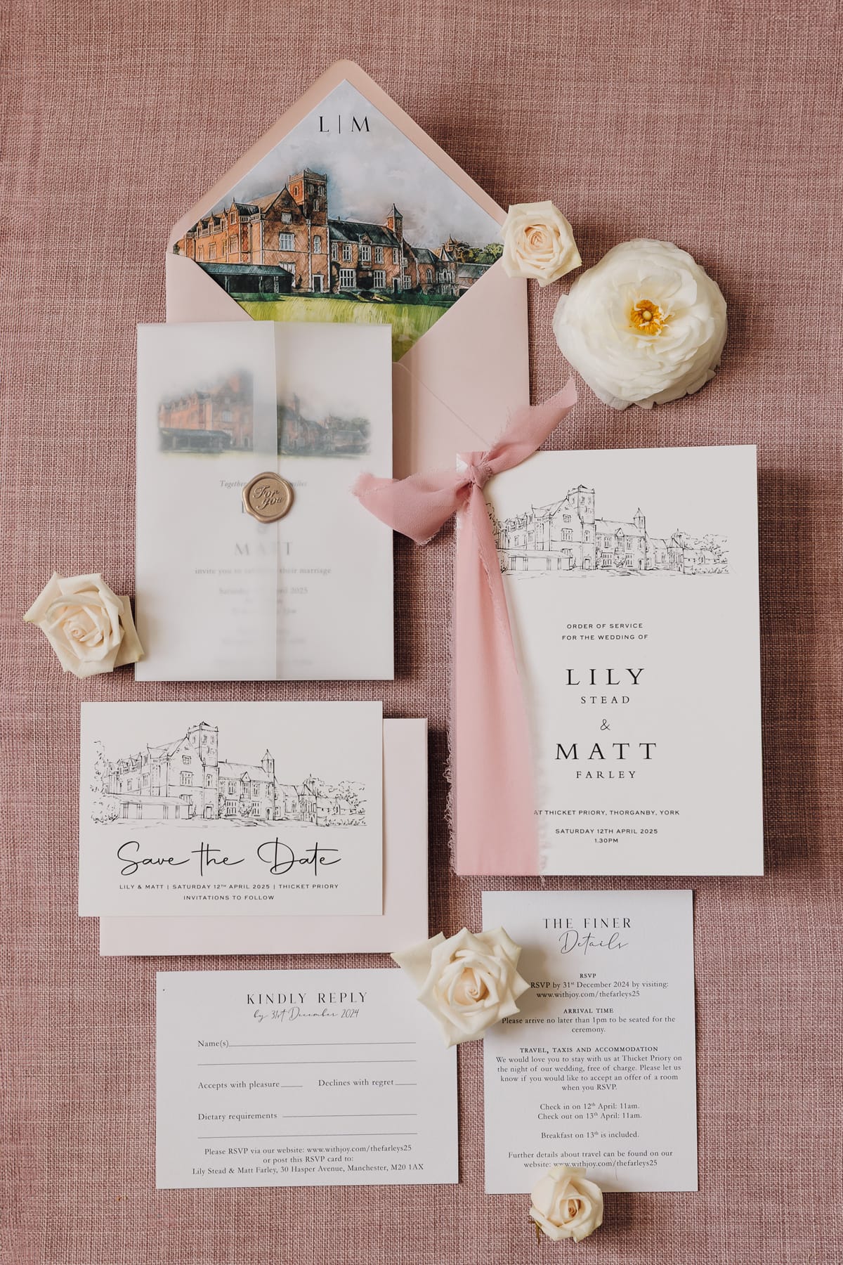 Thicket Priory is no ordinary wedding venue – we felt that as soon as we entered the grounds on our first visit! Yes, the building is stunning, the grounds are immaculate, and every design choice is top-notch; however, what truly makes this place exceptional is the staff. All of the staff at Thicket are attentive and friendly, but our coordinator, Becks, and the general manager, Anna, really made our wedding run smoothly.