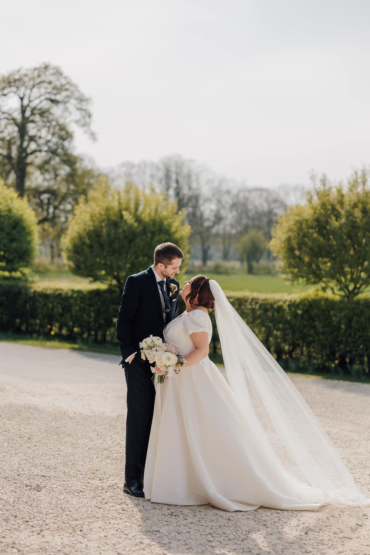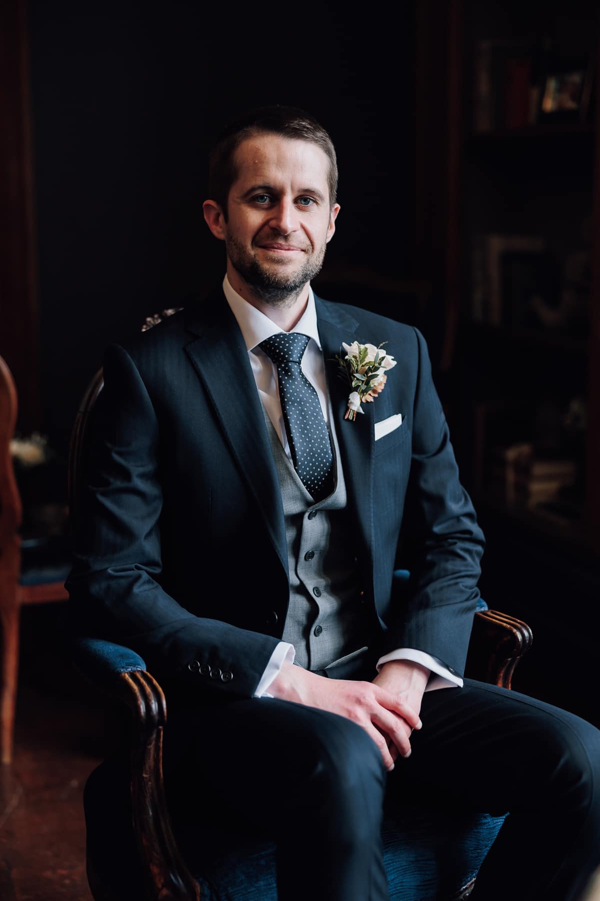 We wanted our outfits to feel classic and traditional with a modern twist. The groom and groomsmen’s dark navy suits were from Marks & Spencer’s Sartorial collection, and Matt paired his with a grey waistcoat, whilst his groomsmen wore navy waistcoats to match their suits. The ties were navy with grey dots to bring the look together.