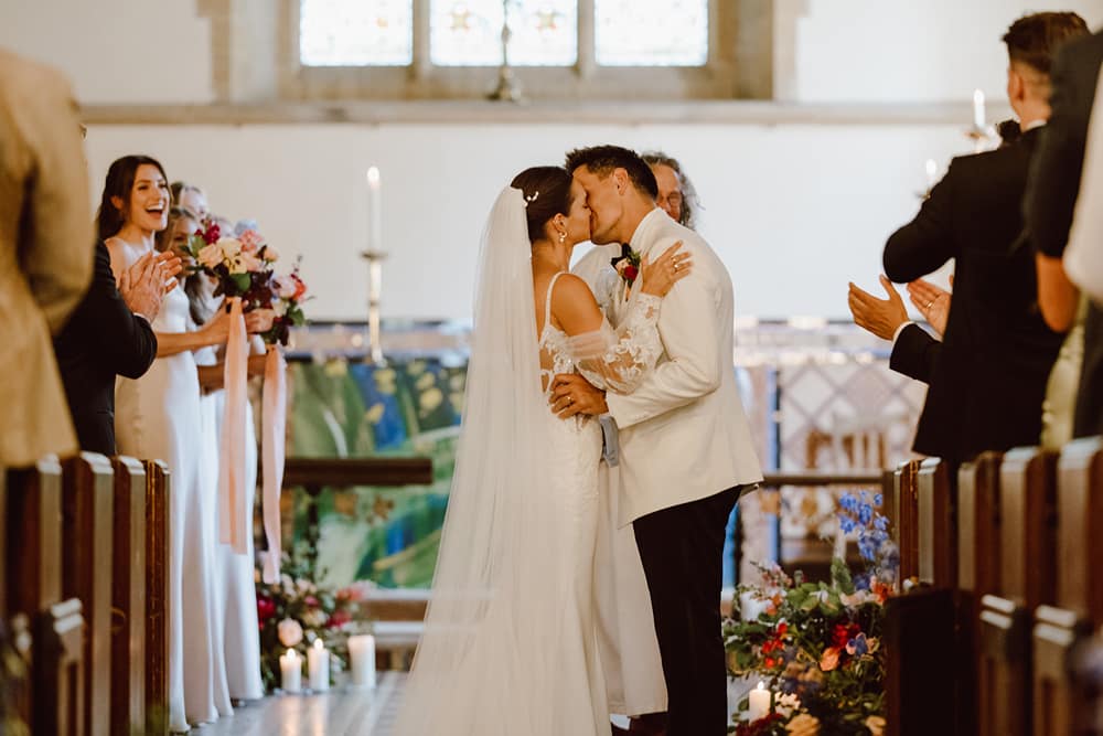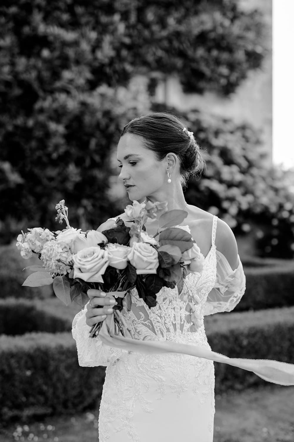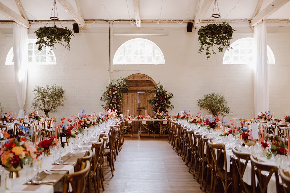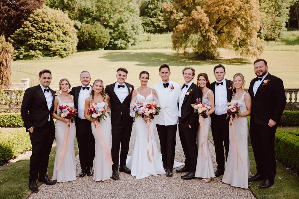 Planned by Bryony at Blue Door Weddings, their wedding was a delightful fusion of cultures, with an Italian-inspired theme paying homage to the groom’s heritage. The day was adorned with a vibrant tapestry of colourful flowers meticulously crafted by Fig & Flower, and guests graced the occasion in sophisticated black tie attire. It was a celebration that seamlessly blended the splendour of English charm with the warmth of Italian traditions, set amidst the stunning natural beauty of this country estate.