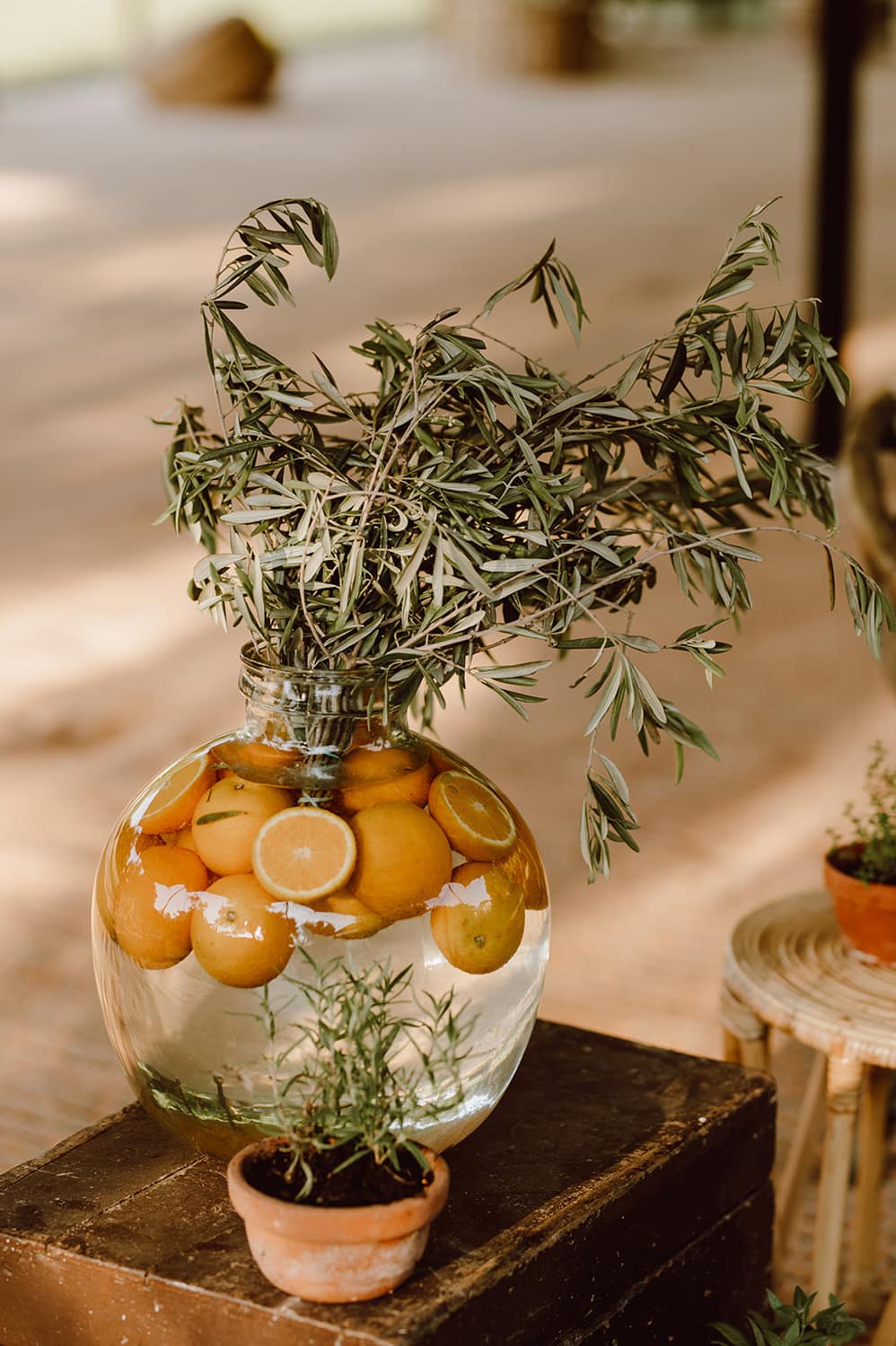 Lucy & Seb wanted to combine the groom’s Italian heritage with their shared elegant style but with a sense of real fun and adventure. The colour scheme was bright with accents of lemon and orange for a Sicilian twist but with plenty of textures. Velvet, rattan, coloured glassware, wood and wool all featured in their styling and soft furnishings, which sounds like an eclectic mix, but boy, it worked when blended. They also wanted to work with the elegant rusticity and rural location of the venue but never take away from the instant wow factor of the whole day.
