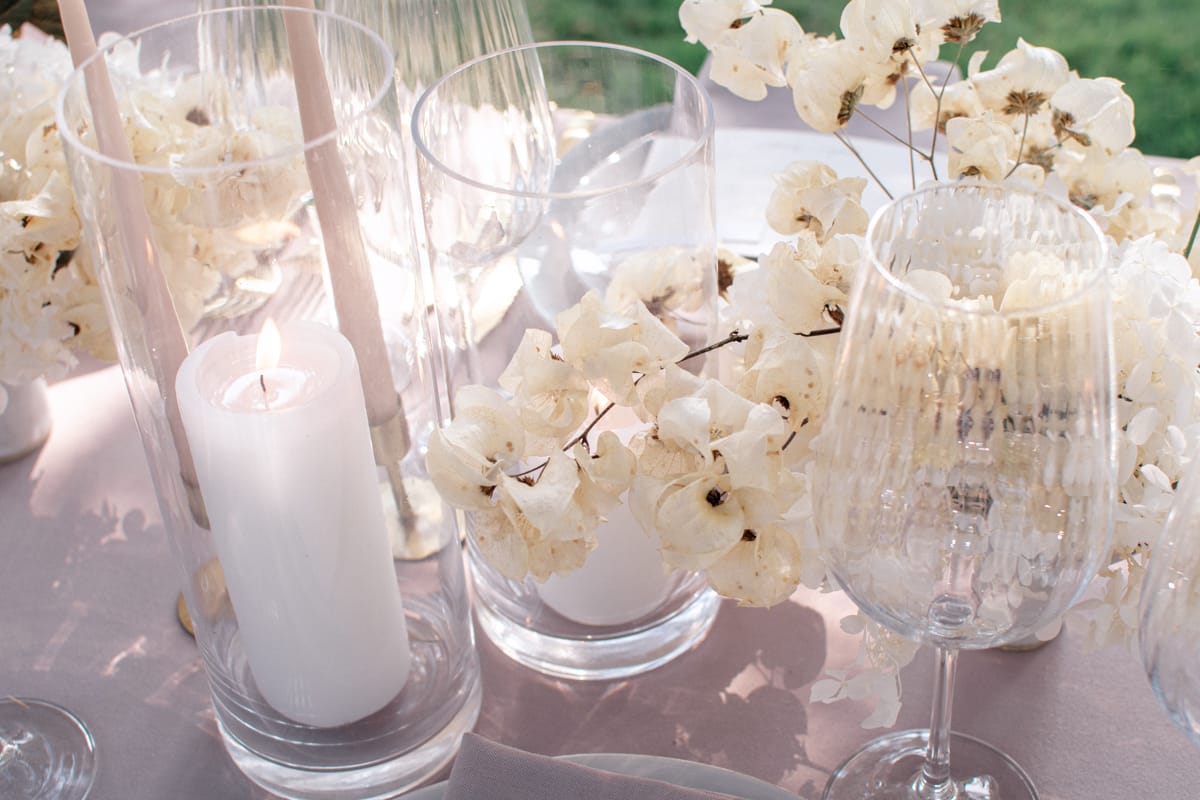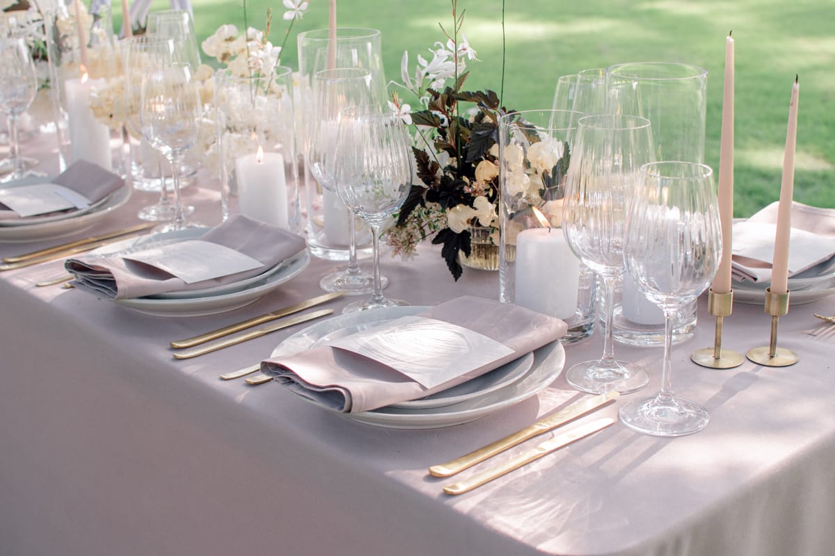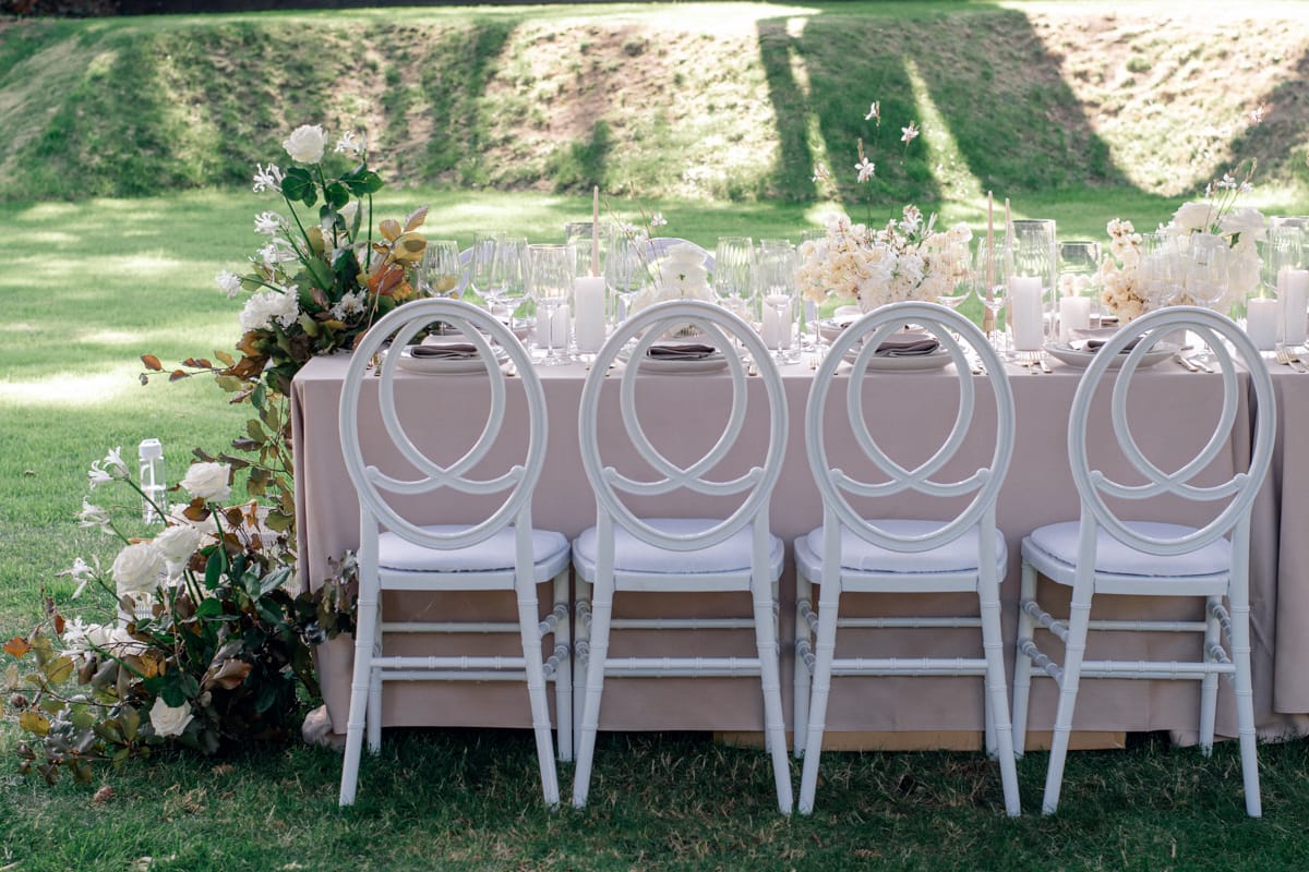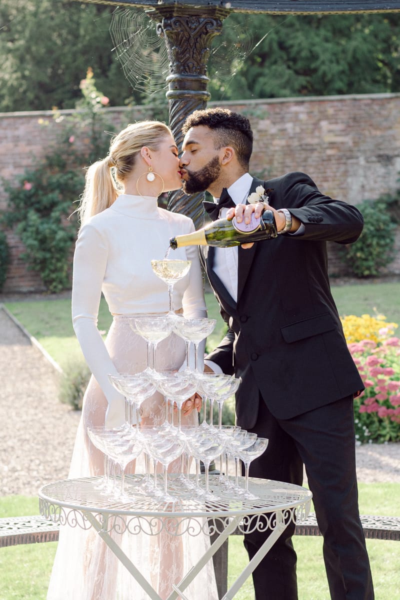 If you’re planning a beautiful country house wedding, deciding to hold your wedding breakfast or party outside if the weather allows means you can create a completely new atmospheric setting within your venue. With the right styling and decor choices this shoot demonstrates that it can also be done in a luxurious but modern way.