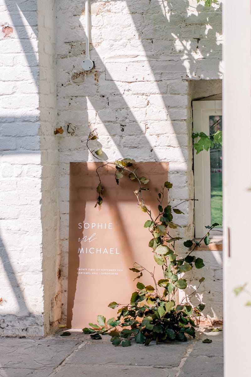 By keeping the decor modern and muted this added a minimal yet cool, luxury edge to the shoot theme. Ultimately we wanted it to have a natural effortless feel, yet still seem fresh and new. It also tied in well with the beautiful gardens at Garthmyl, not compromising the statement that they already create themselves. Light fabrics were used and neutral whites were a prominent colour choice for this inspiration piece.