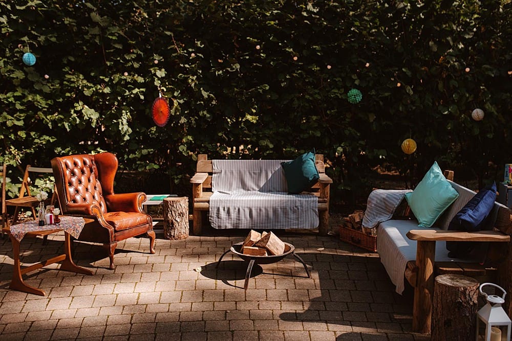 We wanted to work with the natural setting, so the trees were the shining star and backbone of our day. And then we eventually came to this concept of an outdoor living room! We wanted everyone to feel at ease, like the space was theirs to nestle in to. Nothing formal or starchy and as eco as possible.