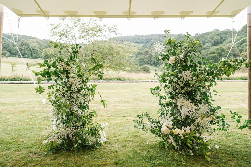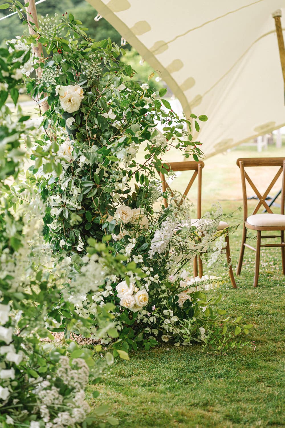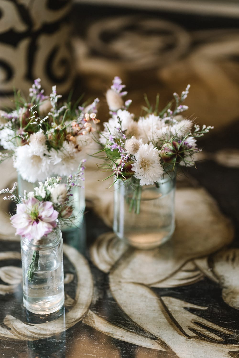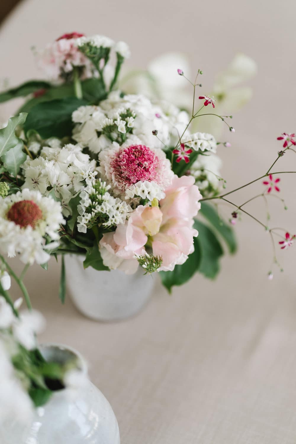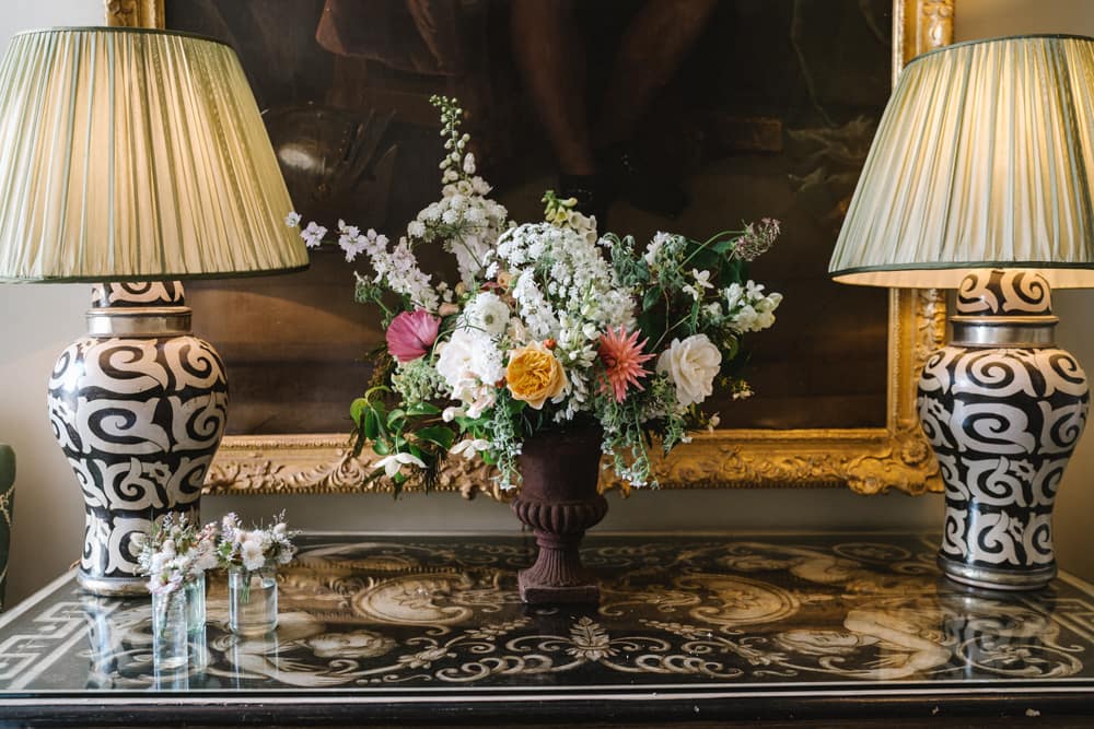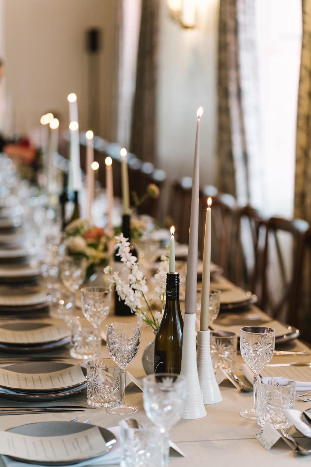 Booking Rebecca from The Garden Gate Flower Company was among the first tasks I completed. After researching weddings at Boconnoc, I knew she was the perfect fit. From our first call, I felt assured that she understood my vision and her ethos aligned with ours. She encouraged me to choose a style and palette for the flowers rather than specific blooms, ensuring they were seasonal. I loved this approach, and it was even more special knowing that the flowers were locally grown, just down the road from the venue. My mum, a ceramicist, handcrafted all the candlesticks for the wedding, which beautifully complemented Rebecca’s ceramic vases and floral arrangements. The overall table setting was a true reflection of my vision.