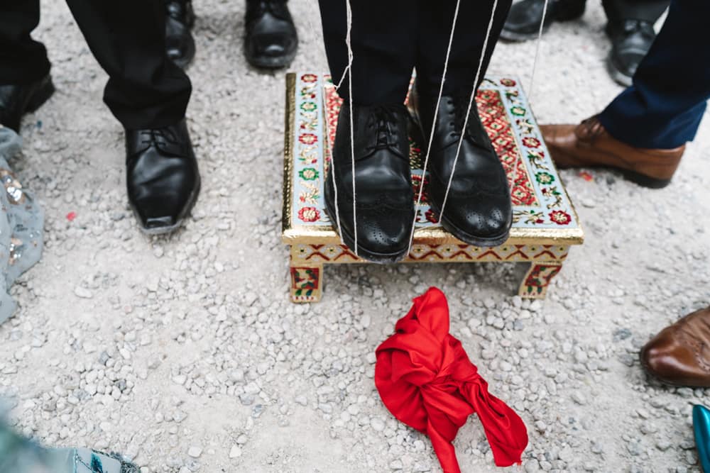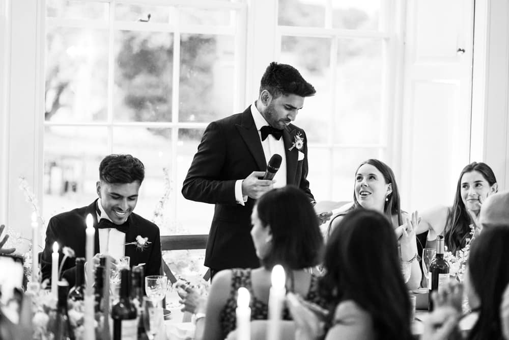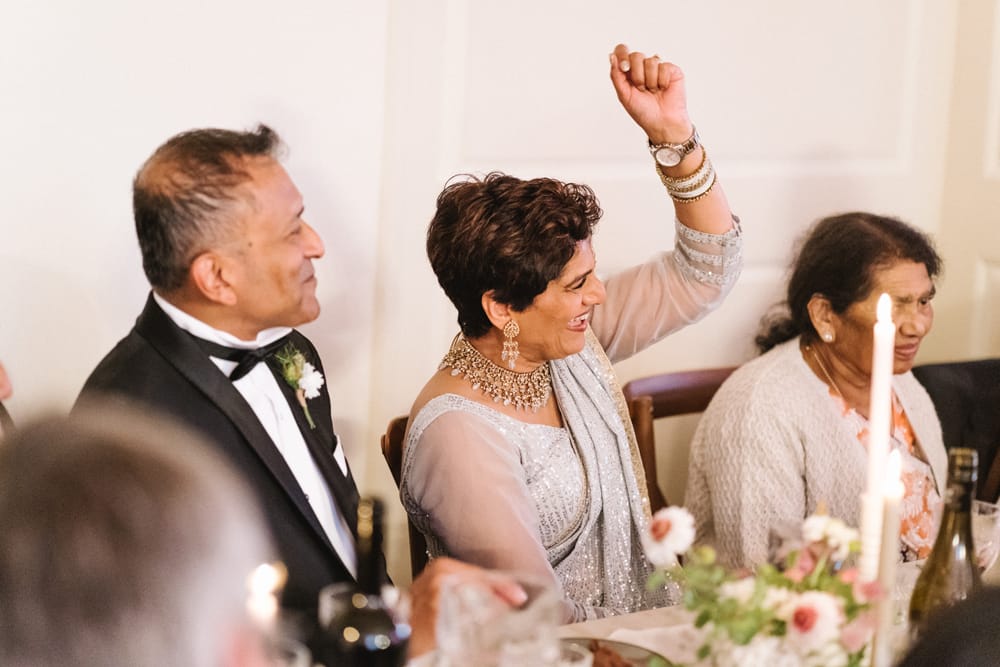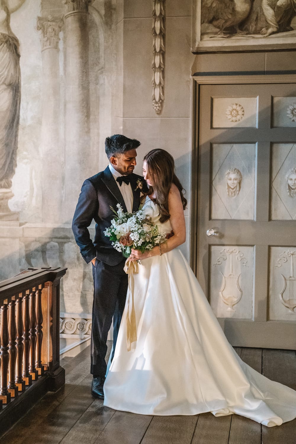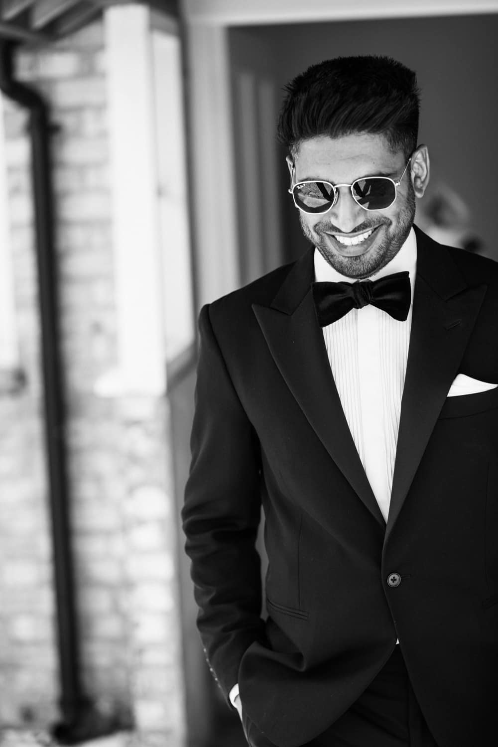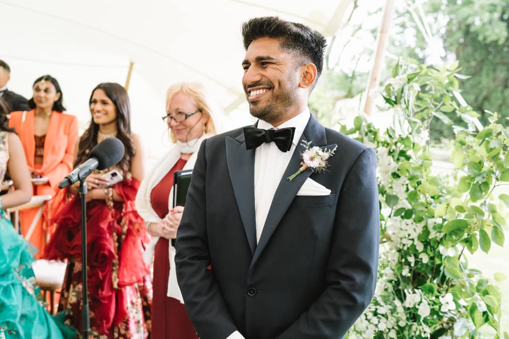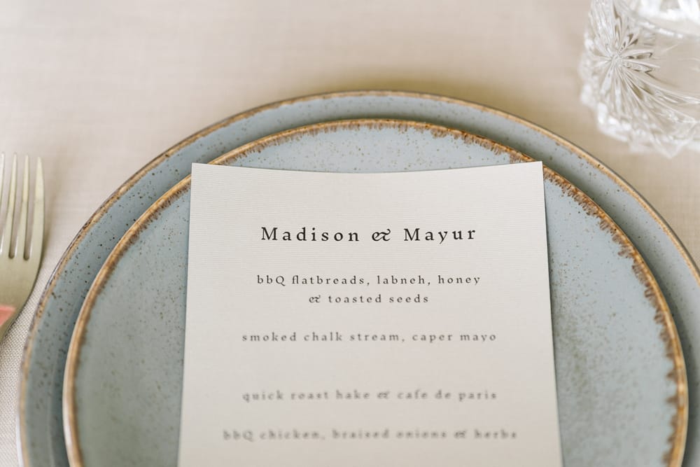 Suzanne Neville designed my dress. It turned out to be a bit more extravagant than I initially thought, but I loved its modern classic look and felt it represented me. The venue allowed me to make it as grand or minimal as I wished. Mayur’s tuxedo was from Ralph Lauren, a deep navy colour that set him apart from other guests. Selecting bridesmaids’ dresses proved challenging. Still, we eventually settled on silk green Jenny Yoo dresses, which looked stunning. I kept my jewellery simple, wearing a gold bracelet that belonged to my grandma and a modest diamond necklace from my sister. My shoes were a steal at £15 from Asos.