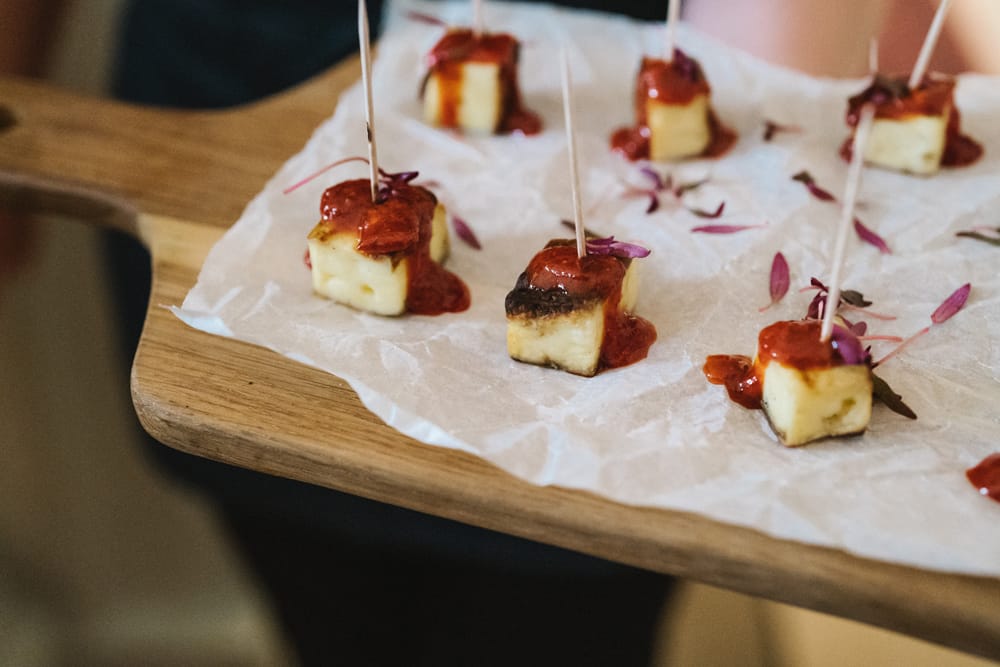 We were delighted with the catering provided by Beautiful & The Feast. The wedding breakfast showcased fresh and local Cornish ingredients, while the late-night snacks featured samosas!