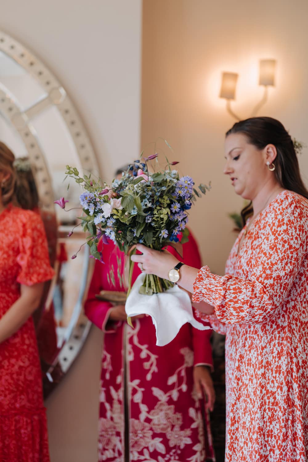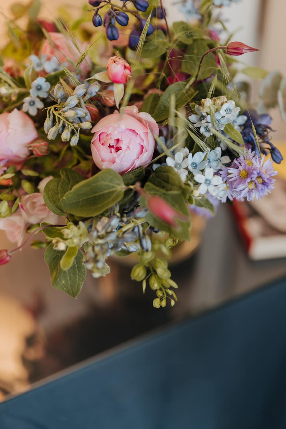 When Iscoyd was confirmed as the venue, my mum and I fully agreed that we wanted Selina to do the flowers. Every time we have visited Iscoyd on family occasions, we have loved the beautiful arrangements she creates with lots of greenery, wildflowers and bold colours. Selina was very patient when going through all my inspiration from Instagram! We loved the relaxed, rustic look of the tables using bud vases amongst the colourful candles, and the church flowers were so pretty. I have tried my best to dry out my bouquet so I can keep it forever.