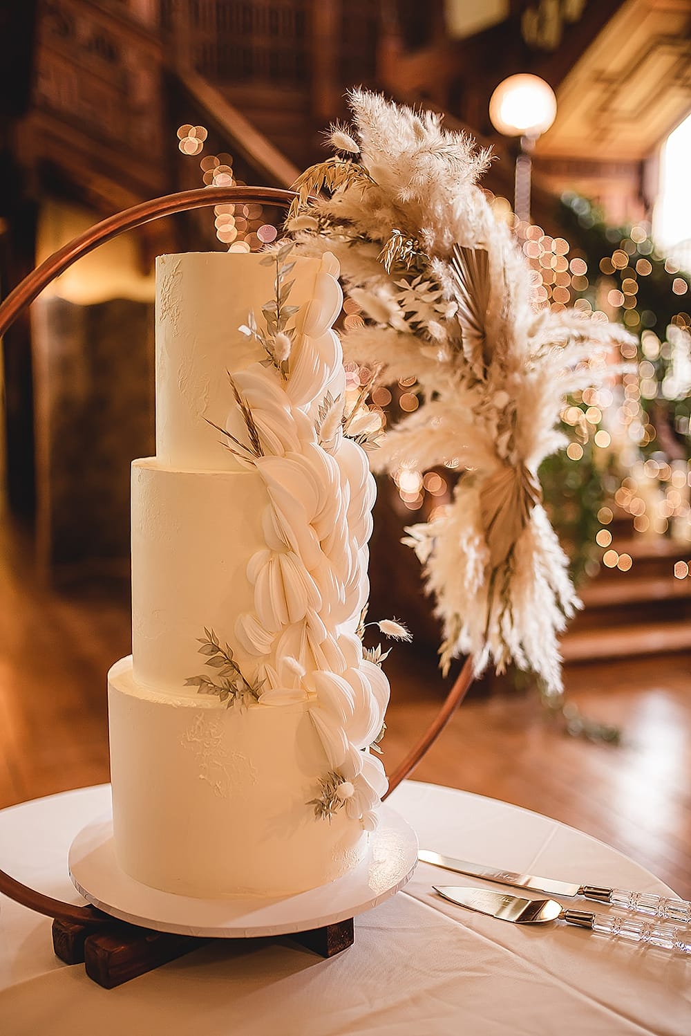 Our cake by Cakes ‘n’ Sprinkles was a three tiered cake with Biscoff, raspberry and white chocolate and lemon and poppy seed, with a buttercream covering that was ivory and minimal with wafer paper detail on one side and a few dried flowers which were the same as what we used around the venue to tie it all together.