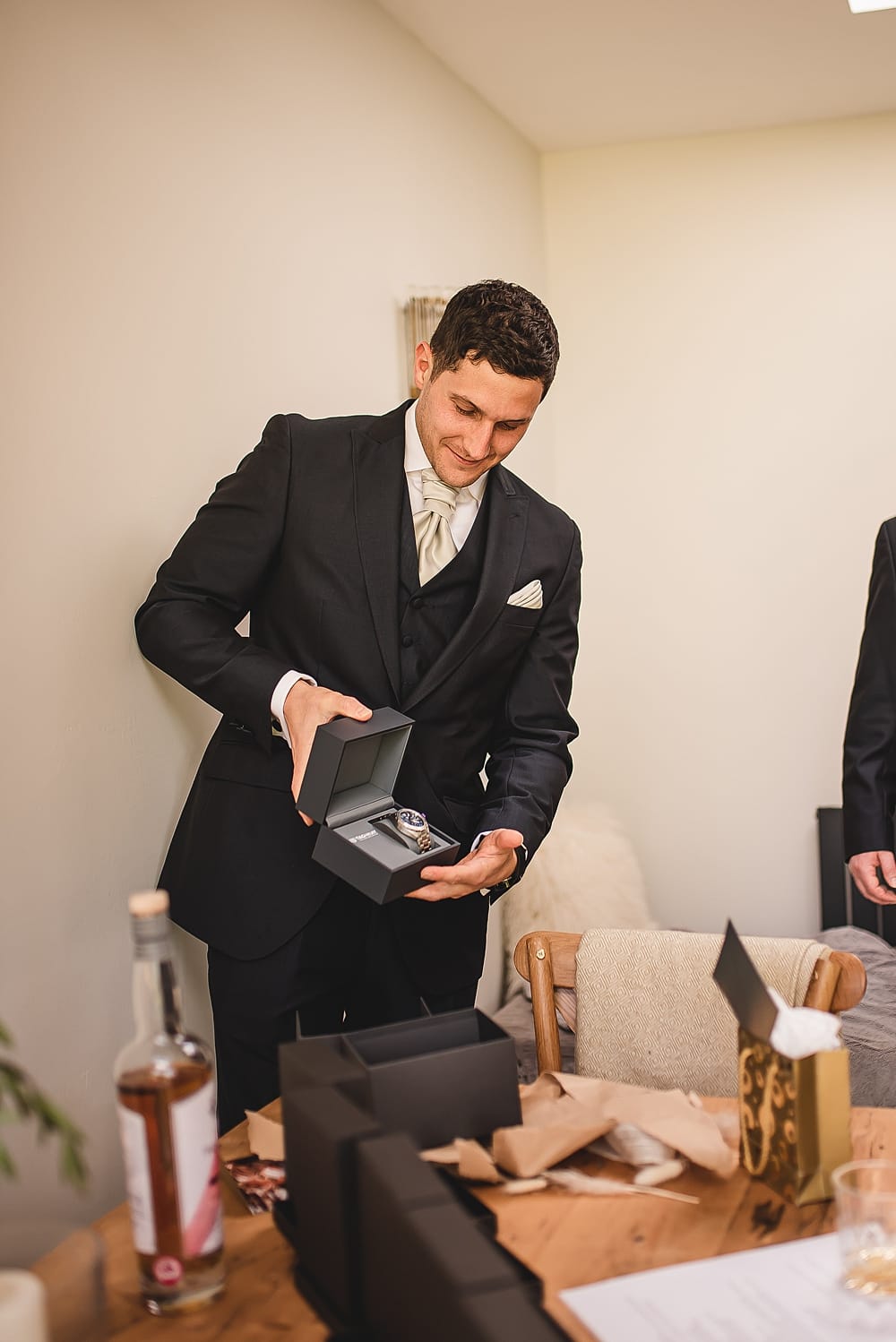 The groom and groomsmen hired their suits from Peter Posh opting for a dark navy three piece with the groomsmen having grey waistcoats to differ from the groom. On the morning of our wedding I gave my husband a gift which was a Tag watch which he wore on the day and my family got him a ‘welcome to the family’ gift of socks that were the Marauder’s Map as he loves Harry Potter.