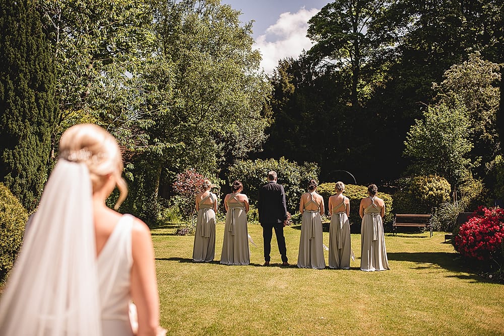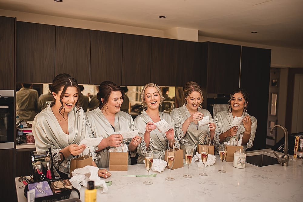 I’ve always loved the multiway bridesmaid dresses as they are classy and versatile so I went for the ‘fossil’ colour floor length dresses and gifted all my bridesmaids gold pearl drop earrings so they matched. I also got them matching green gowns to get ready in in the morning which they loved.