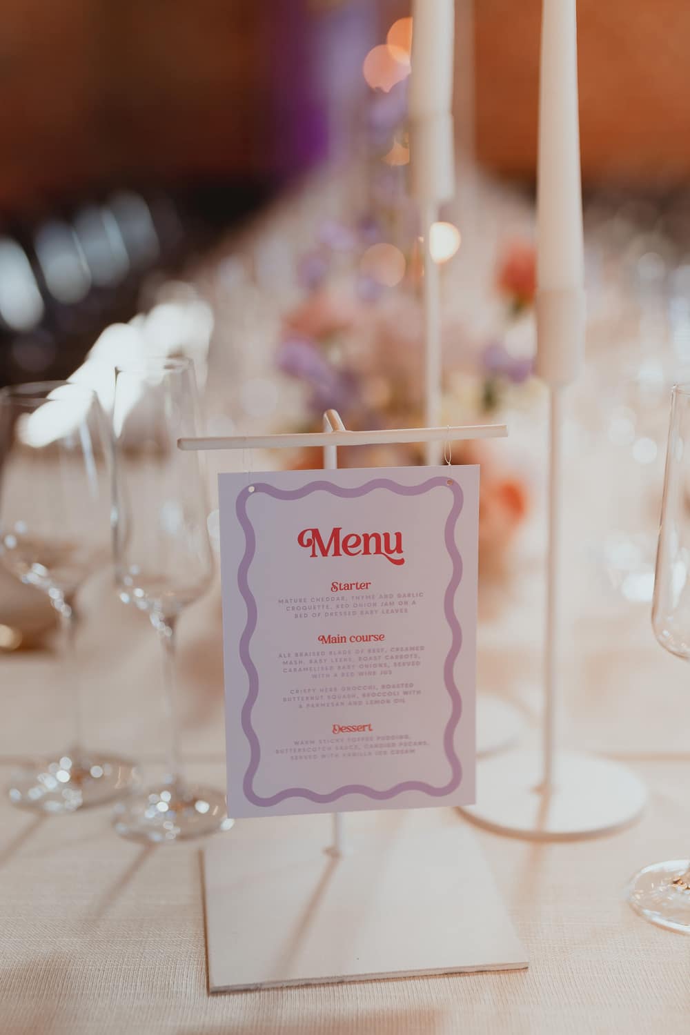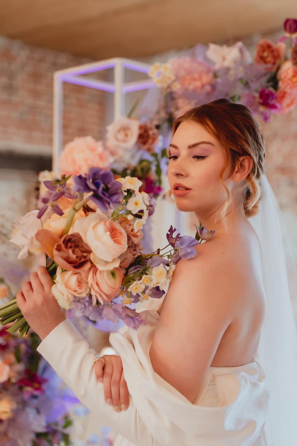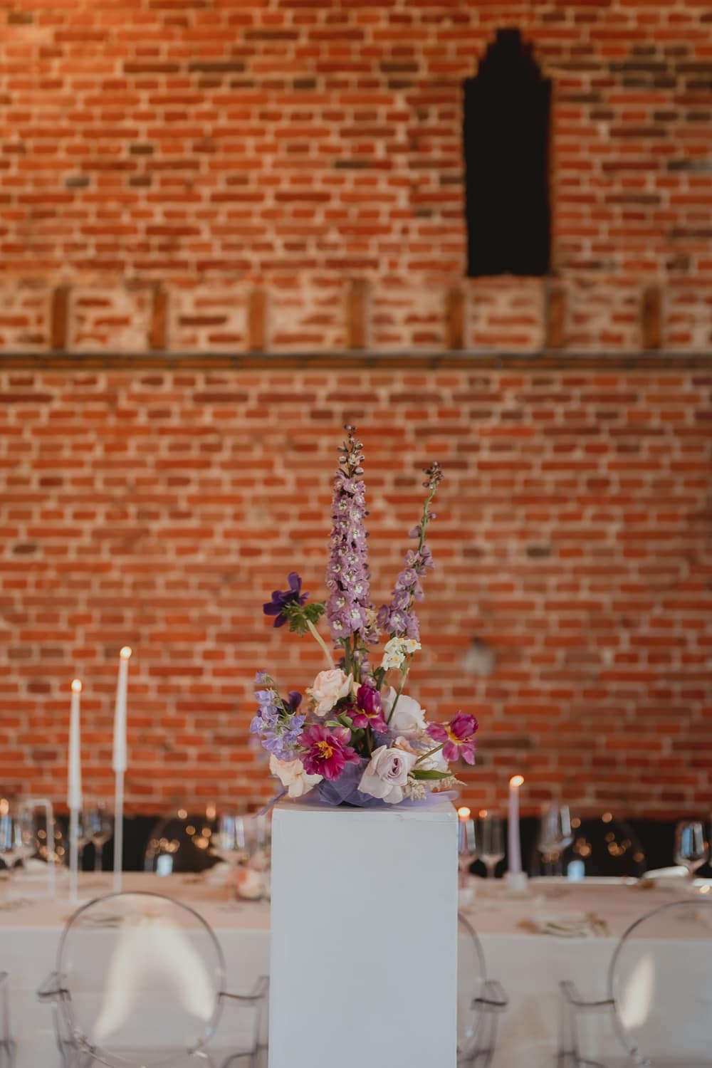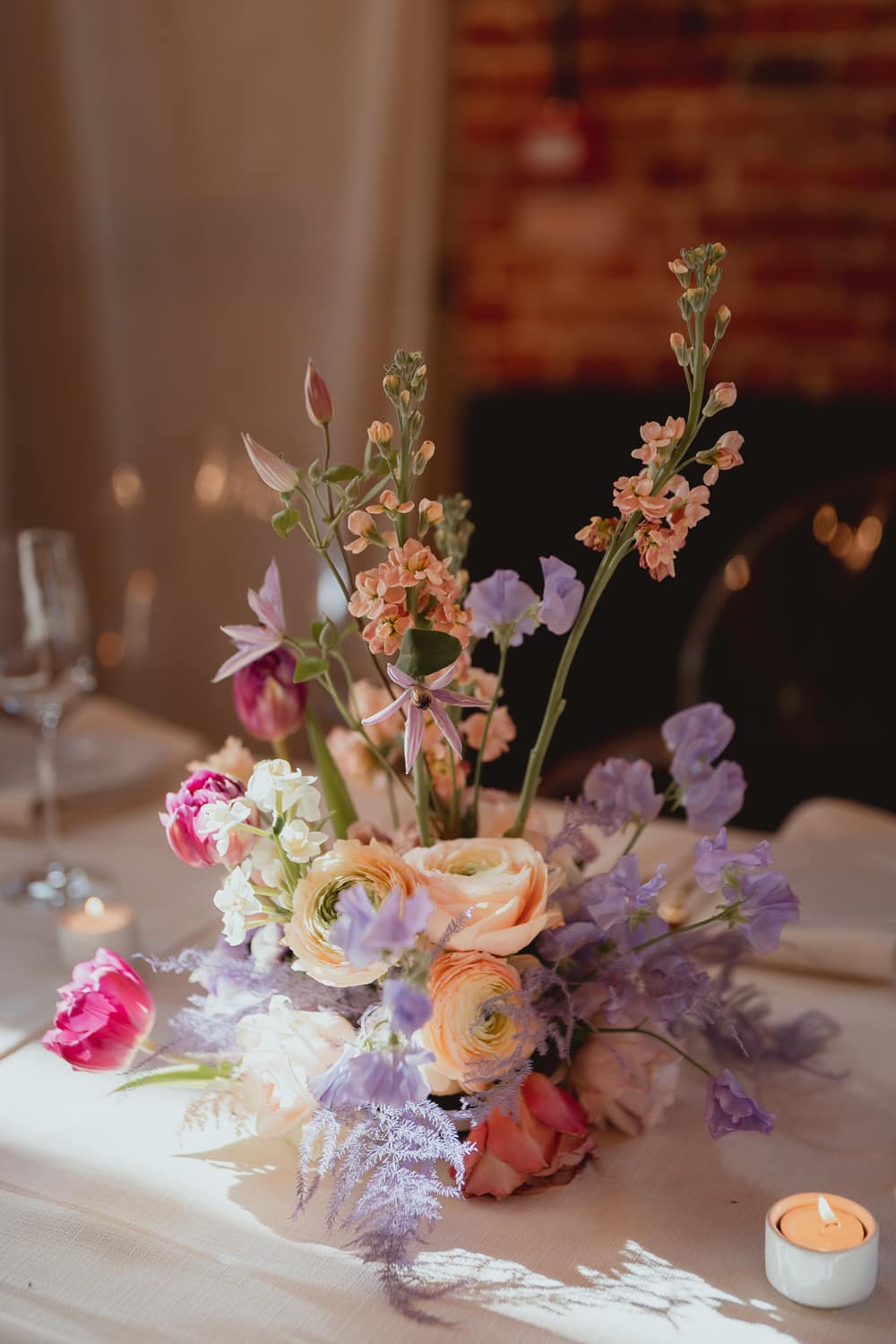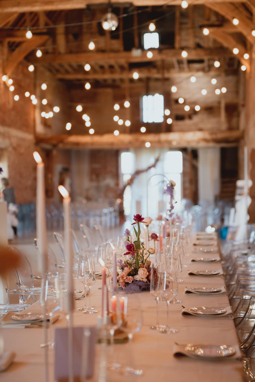 We chose a base of white through lots of the decor pieces, with the primary highlight colour of lilac with peaches, pinks and lemons through the flowers, stationery and smaller details.