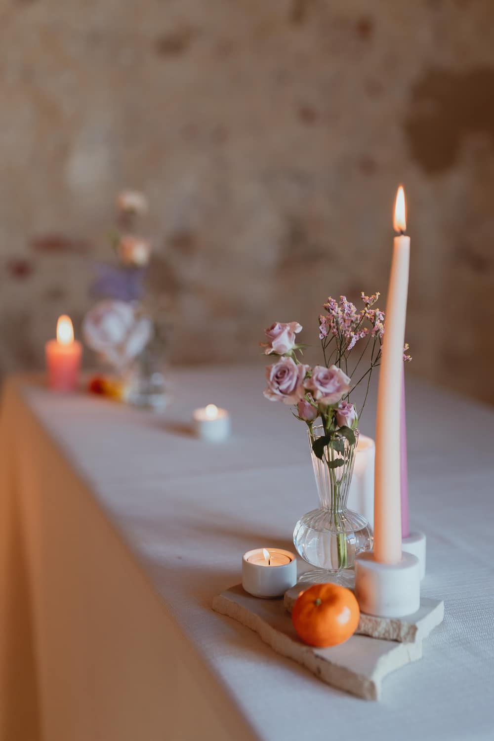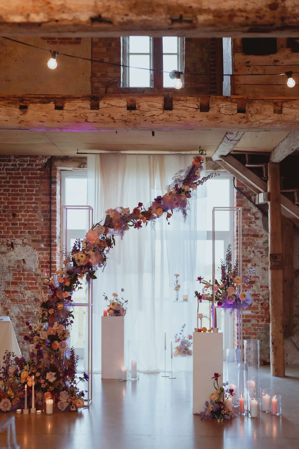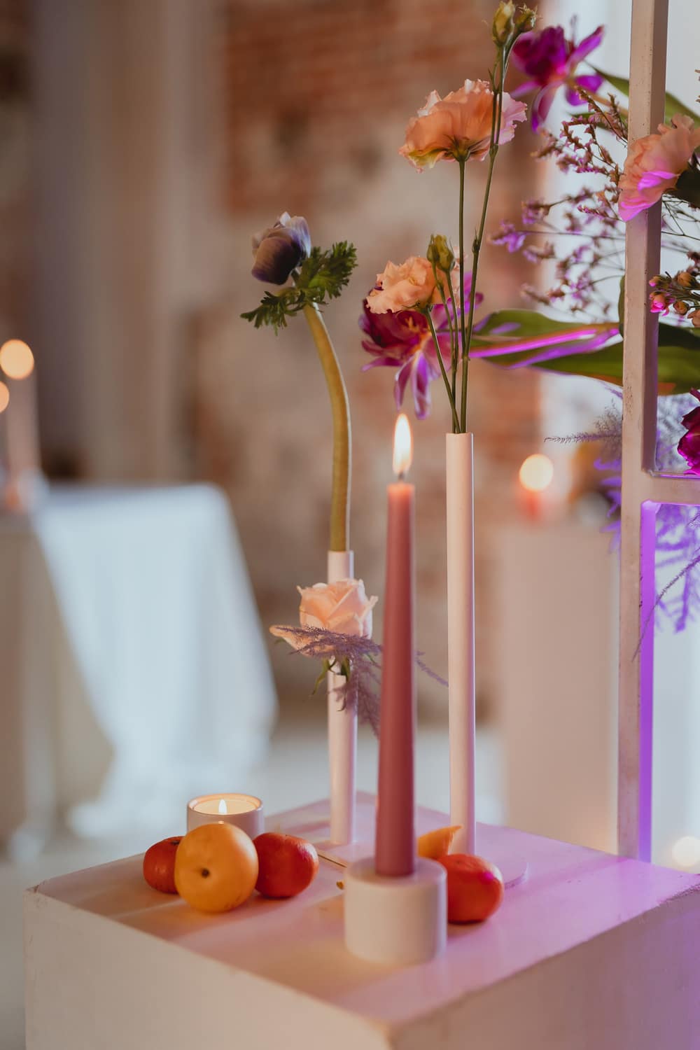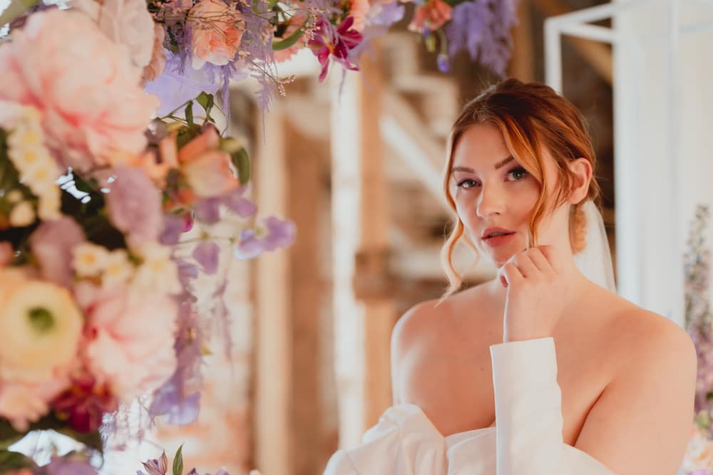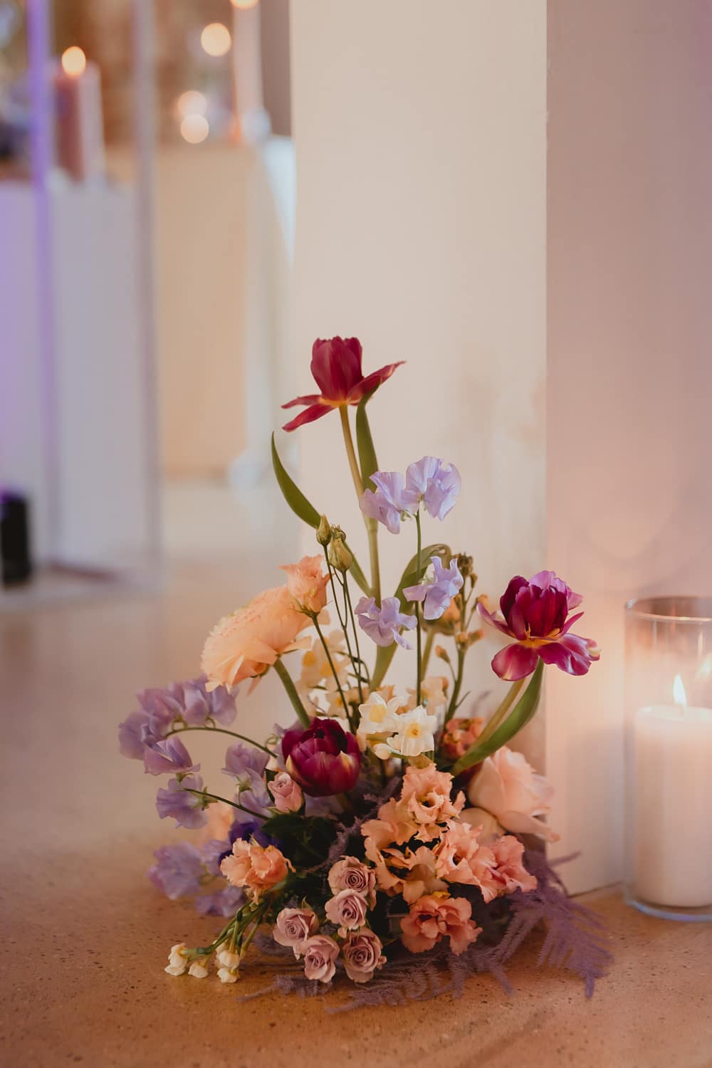 We chose a base of white through lots of the decor pieces, with the primary highlight colour of lilac with peaches, pinks and lemons through the flowers, stationery and smaller details.