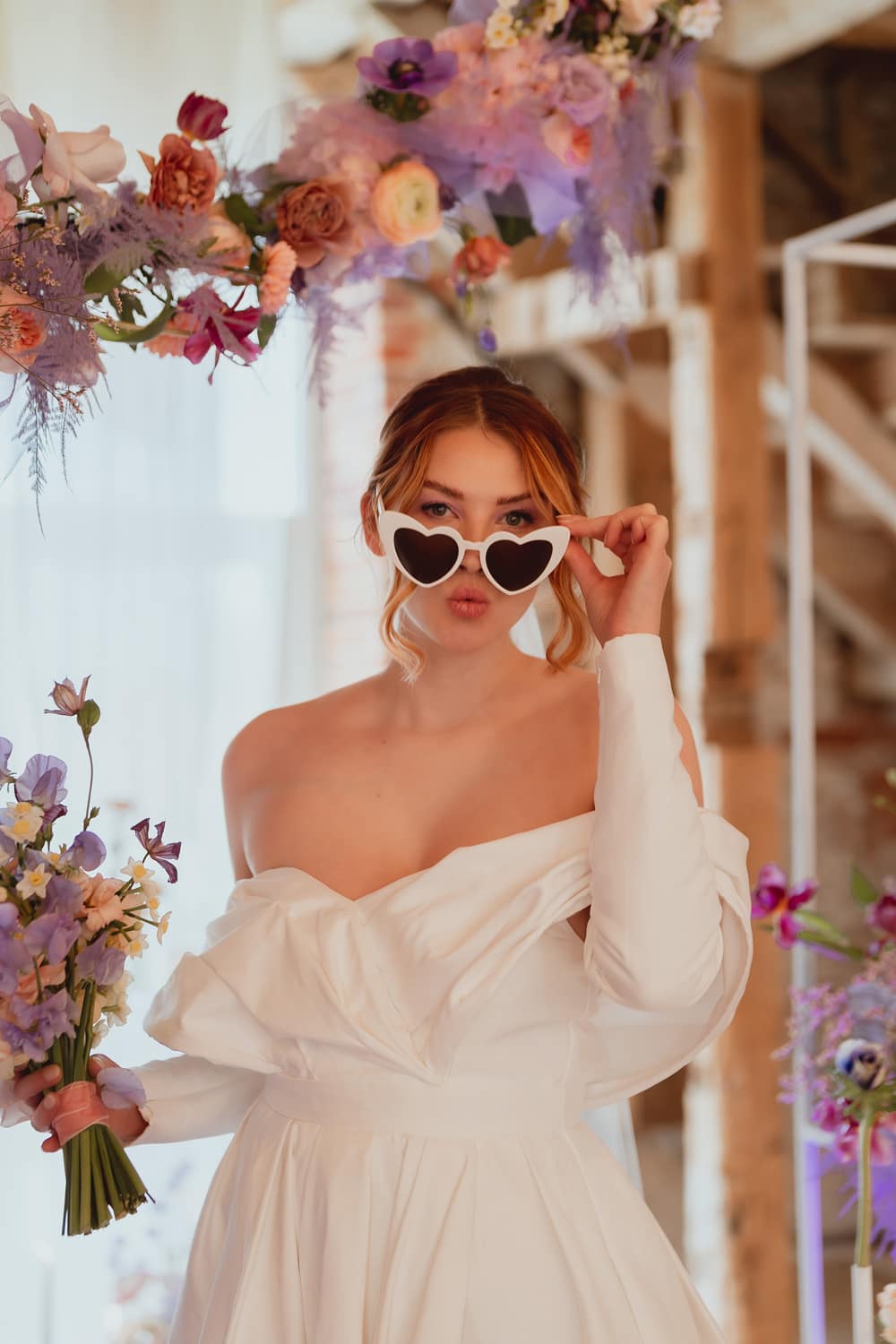 This shoot would be a super fun-loving couple’s dream day. There are so many details and moments to be shared; I could imagine a champagne tower and them sharing pizza slices in the lounge and a great big party with coloured confetti cannons!