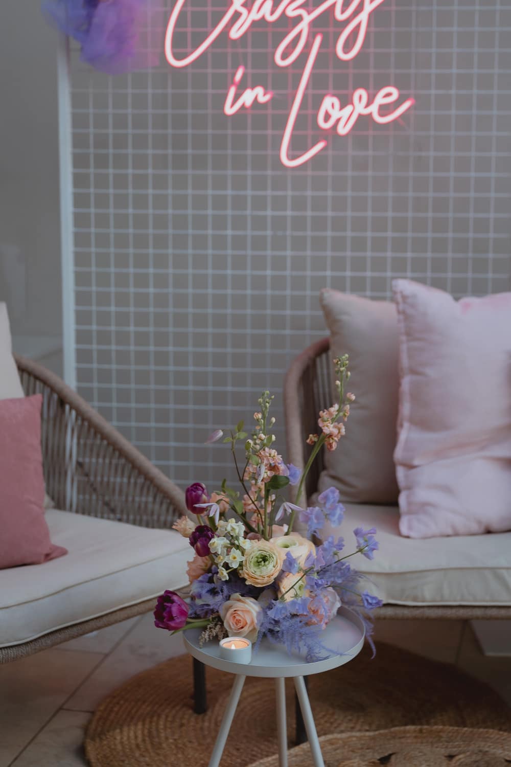 Our theme was fun, feminine and full of the joys of spring, incorporating pastel prettiness with a base of lilac, peach and lemon.