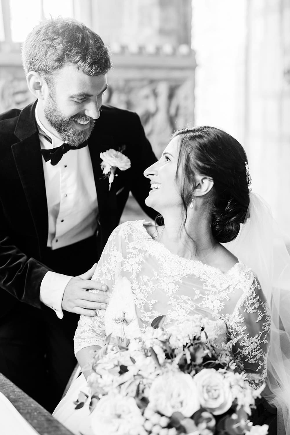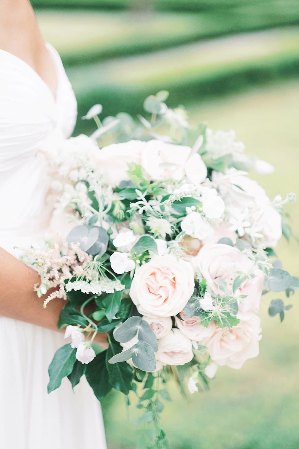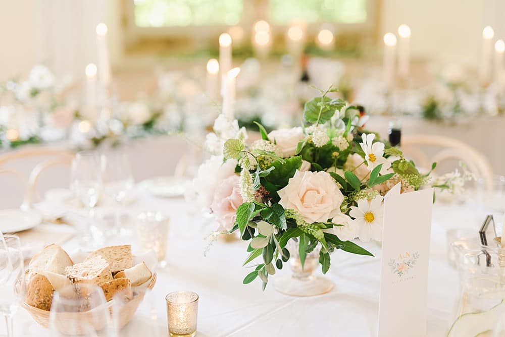 The pastel colour palette suited the charming venue perfectly. Gorgeous blooms by Miriam Faith created the most stunning atmosphere – with a floral arch in the church and golden urns overflowing with roses on the wedding tables.