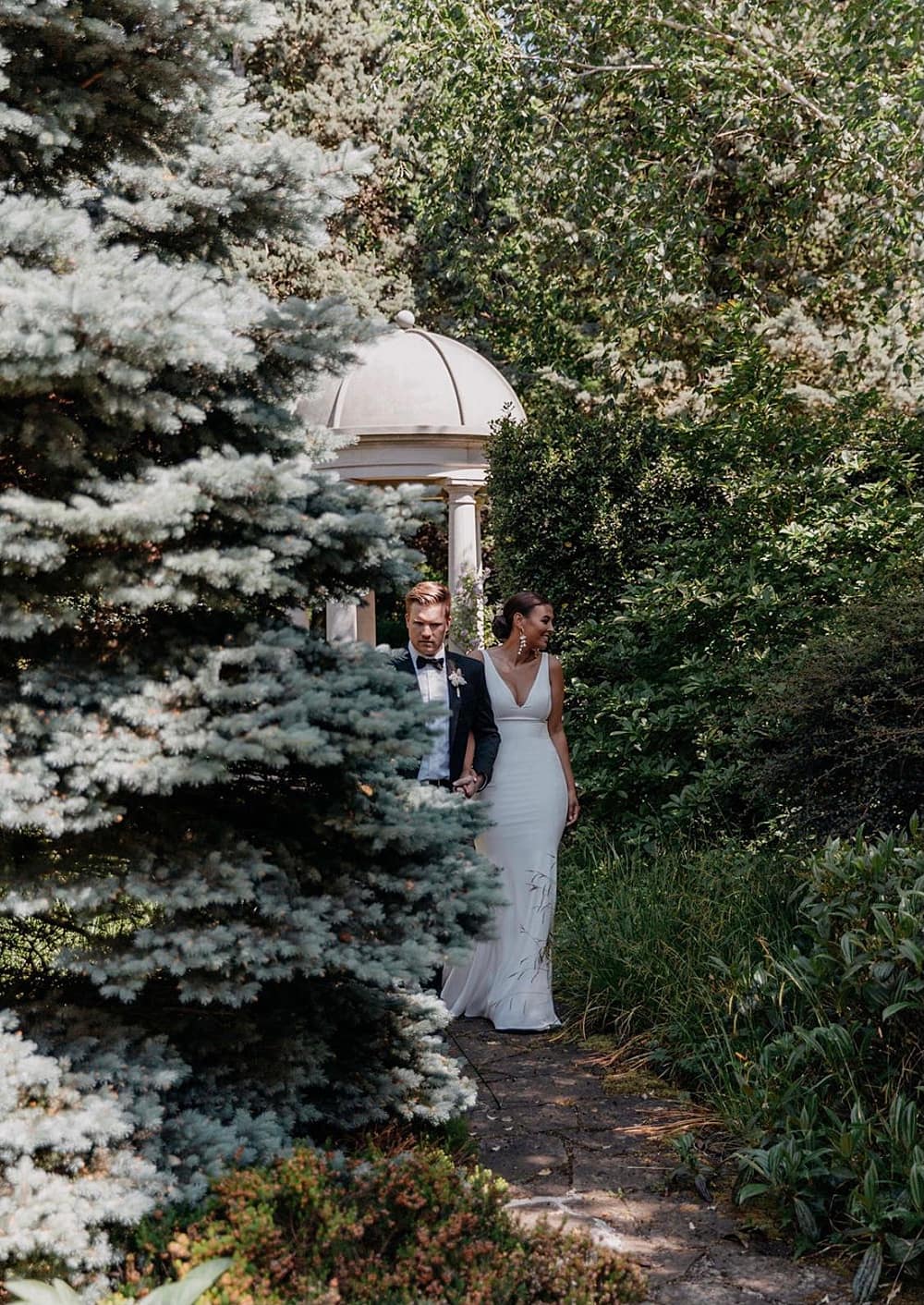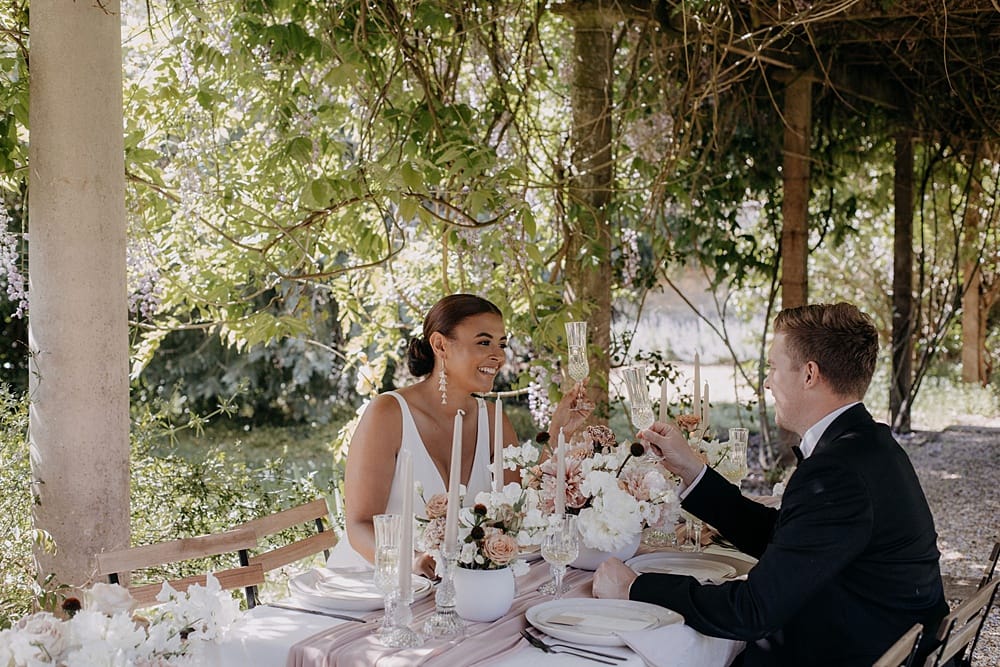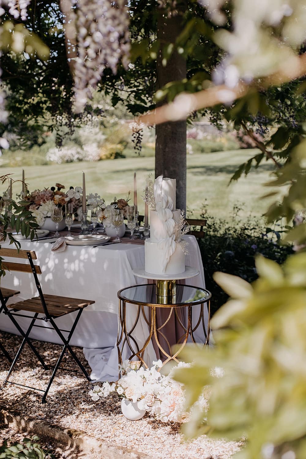 I’m an absolute sucker for a garden arch walkway, you? And if it’s blossoming wisteria, well, I’m sold. This is where today’s creative team decided to set up the stylish dining scene, and believe me, it’s an absolute dream. Complete with dusky pink blooms and rich textures, it looks right at home here in the gardens. This just goes to show how wonderfully a theme can turn out when you work sympathetically with your surroundings, and not against them.