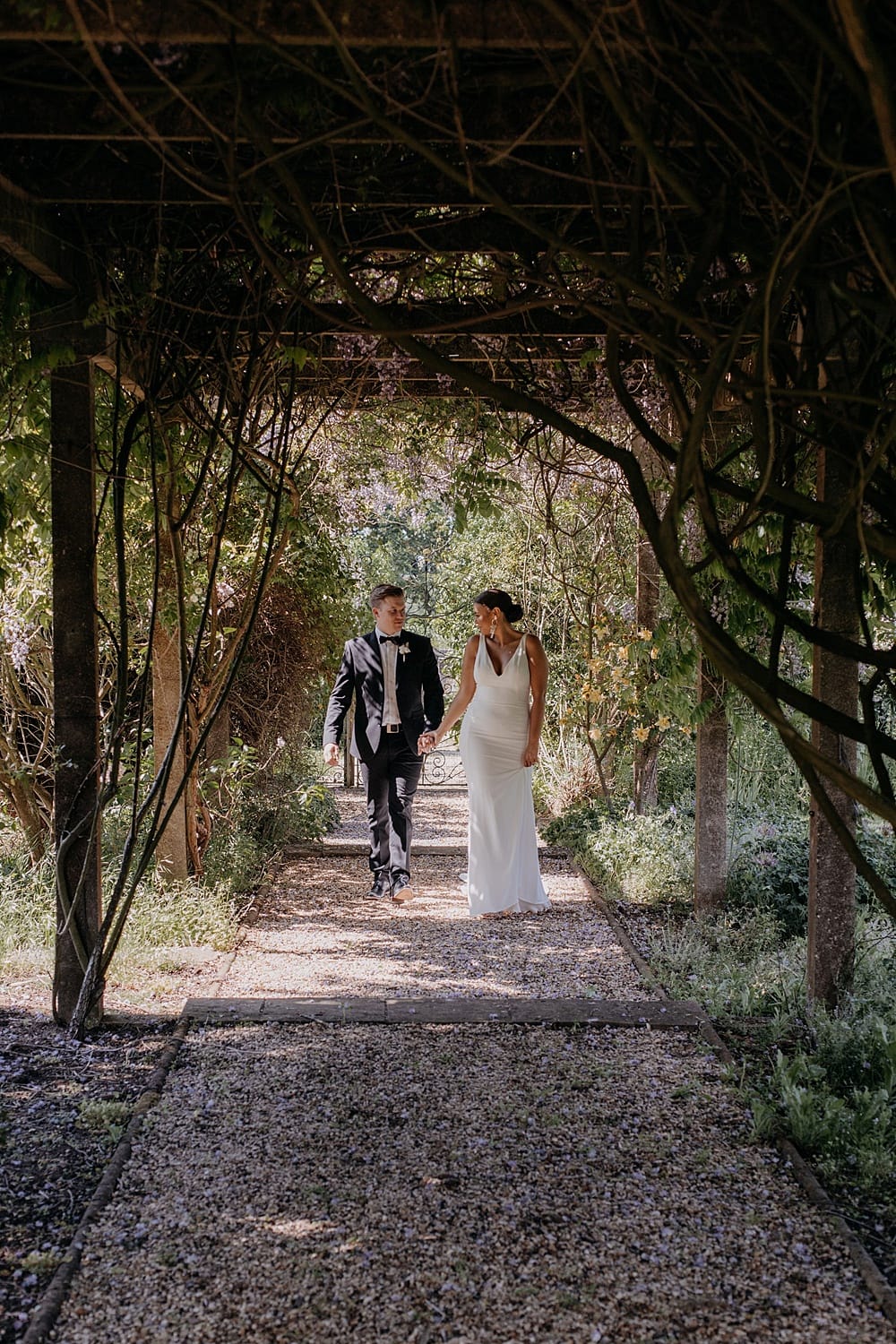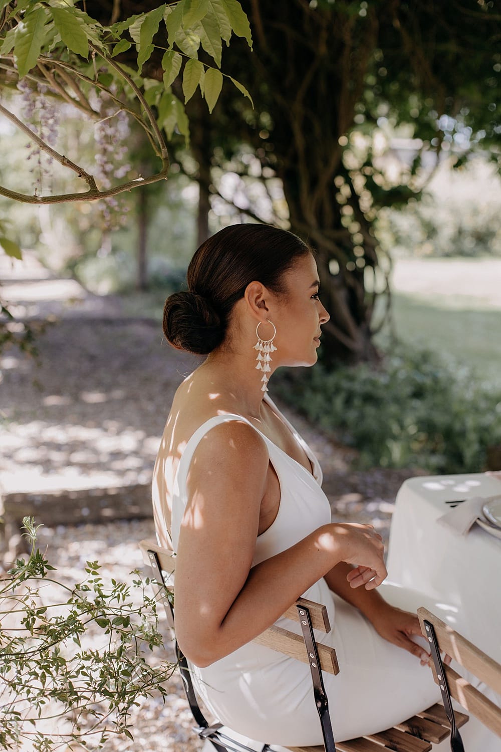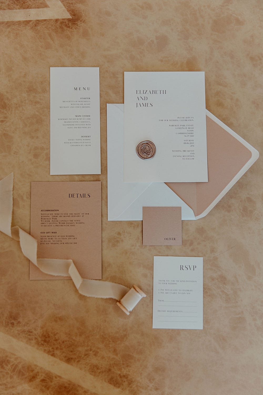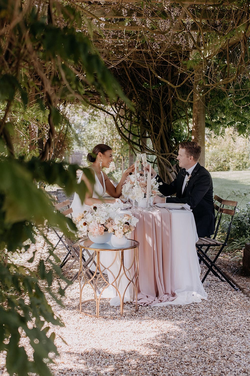 The theme was modern glamour but with simplistic details, so we focused on nudes, pinks and whites. This pastel colour palette looked really fresh and modern in the gardens at Waresley Park, especially under the wisteria arch which we chose as the location for our intimate dining set up.