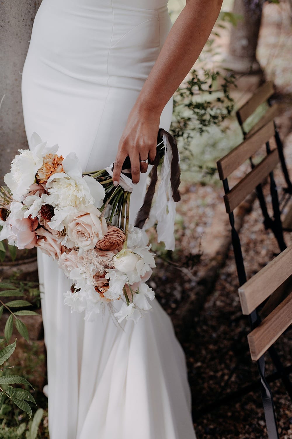 The florist was Sara’s Events Flowers & Styling who made the most gorgeous bouquet bursting with white and blush roses, peonies and dried flowers with hints of pinks and soft browns. She also made a handful of table arrangements to match. The dusky pink palette was reflected through the candles, the table runner and the rustic earthenware crockery. The table was finished with luxury glassware and black cutlery which gave the setting a cool, modern twist.