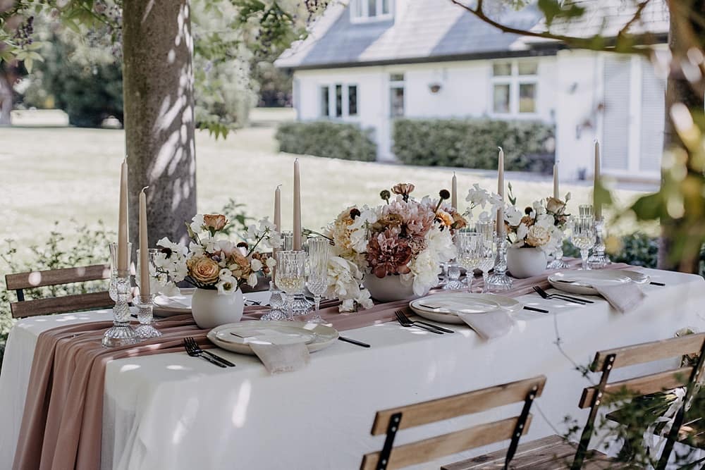 We wanted a neutral colour scheme throughout but with a romantic feel so we included soft minimalistic details and varying textures into the decor and tablescape styling. It looked incredible in the summer but would actually suit any time of year.