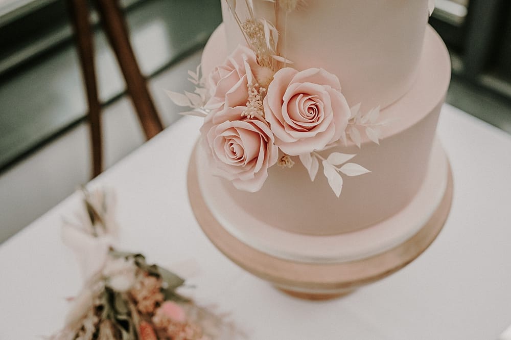The same florals used elsewhere in the Conservatory were repeated on the sleek and simply stunning ombre style cake created by Love Wedding Cakes, with delicate roses and sprigs of dried flowers decorating each tier.