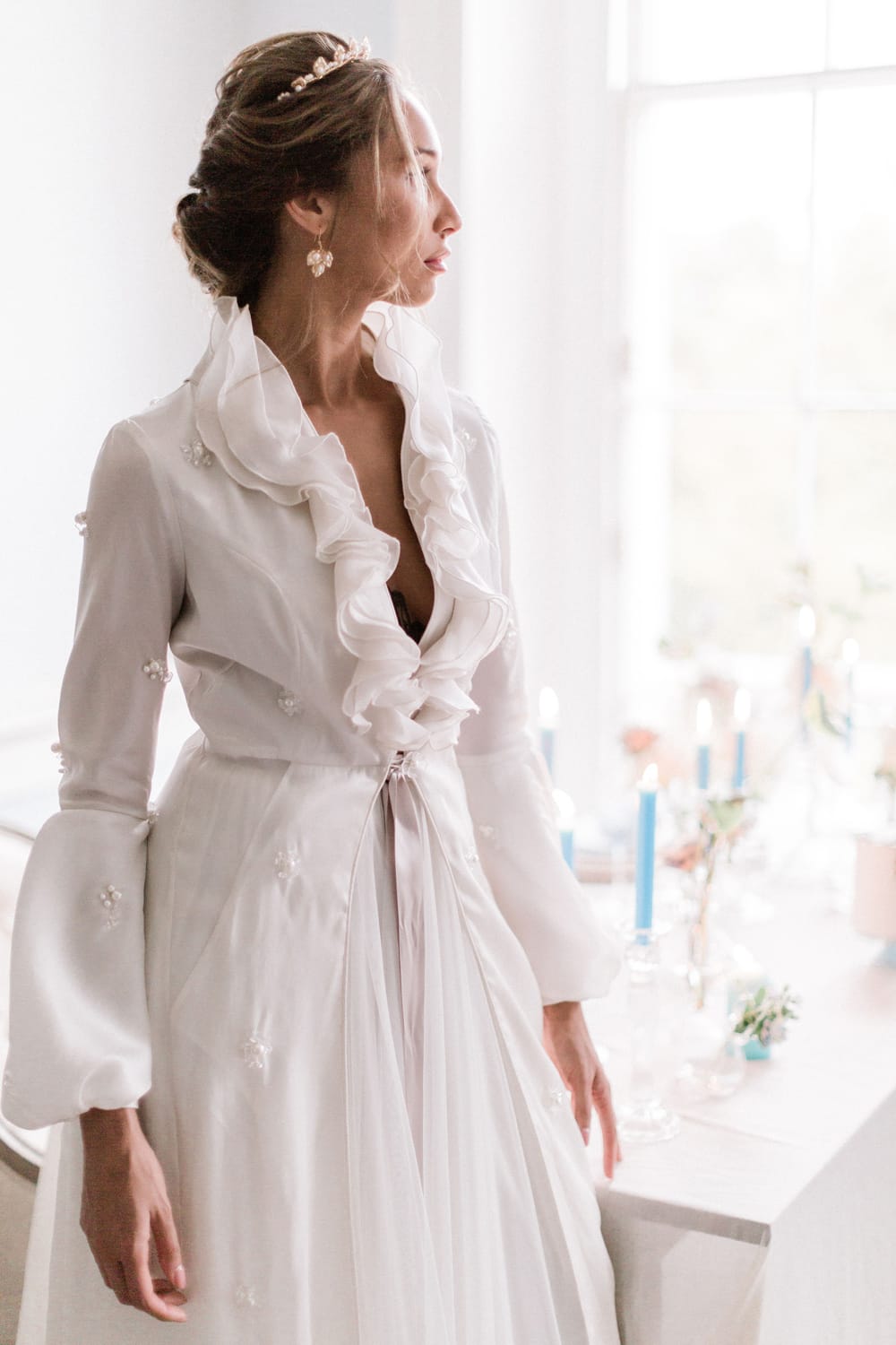 {10-11} Carlton House Terrace’s beautiful blue room was the chosen setting for today’s stunning editorial with bridal couture designer and Supplier We Love, Cynthia Grafton-Holt. A space which fully enhanced the brief of ethereal lightness, grace, elegance and simplicity, resulting in a gallery which is the epitome of thoughtful, understated luxury, perfect for the one-of-a-kind bride.