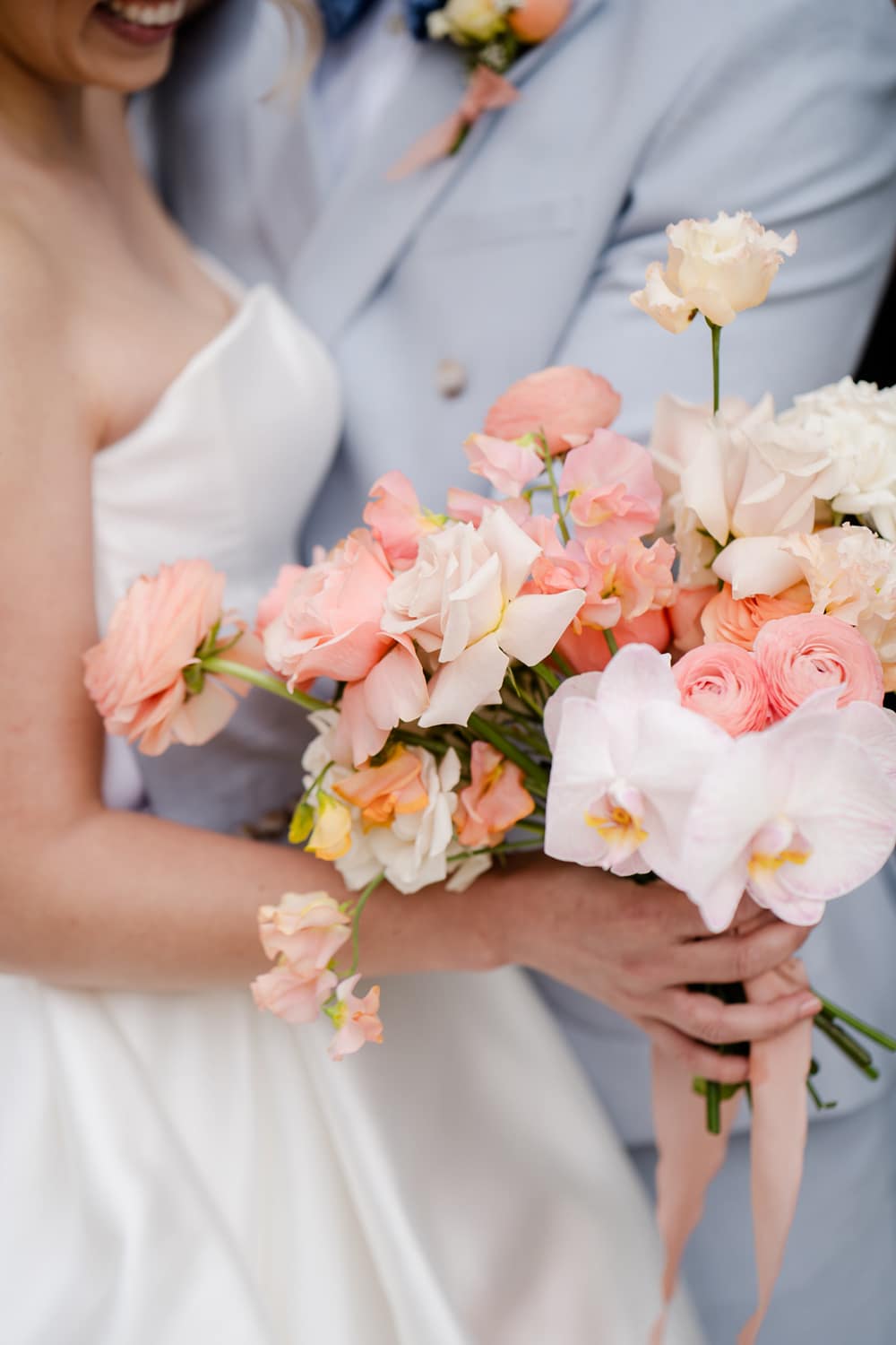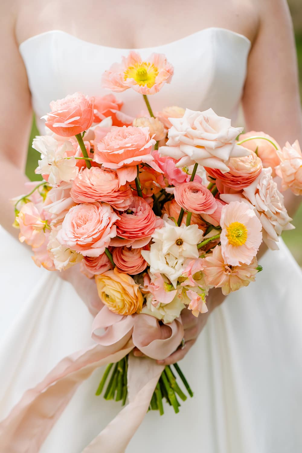 The flowers were perfectly brought to life by Ellie from Dorset Flowers. She created an incredible flower arch for the ceremony with tulips conditioned in a way I’ve never seen before, making the broken arch look truly unique. The flowers were plentiful to create lots of impact, mixing raununculus, roses and Icelandic poppies.