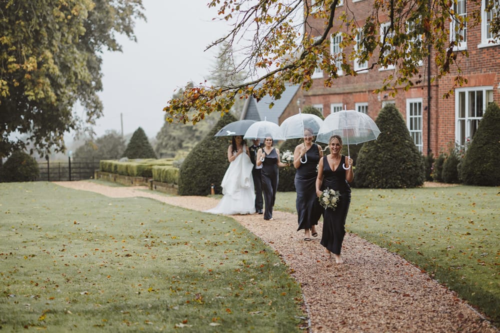 They will keep you dry and add a fun and romantic touch to your photos. Carly and her bridesmaids opted for clear umbrellas to ensure excellent visibility! Check with your venue if they offer umbrella hire service (we do!).