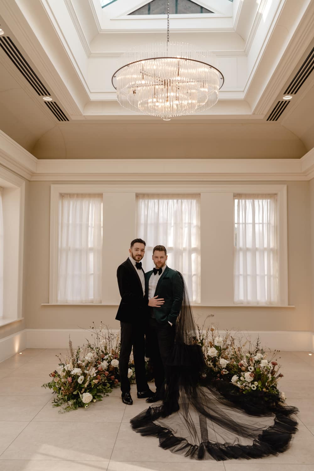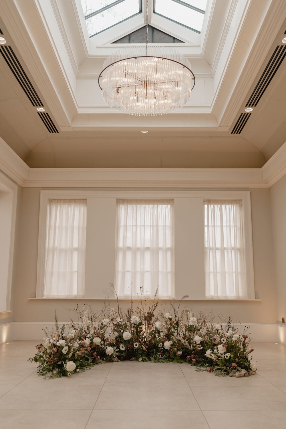 Saltmarshe Hall is undeniably beautiful and chic. This luxury countryside Manor House paired perfectly with the vision for our shoot. Minimalistic modern romance was the brief, and we brought the outside in, with a striking floral installation in the stunning Morning Room. Our ceremony was followed with a champagne celebration in the beautiful new bar.