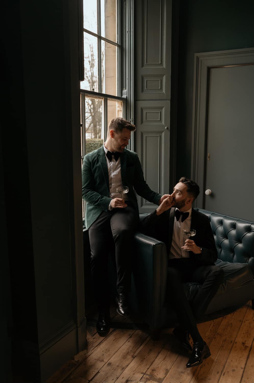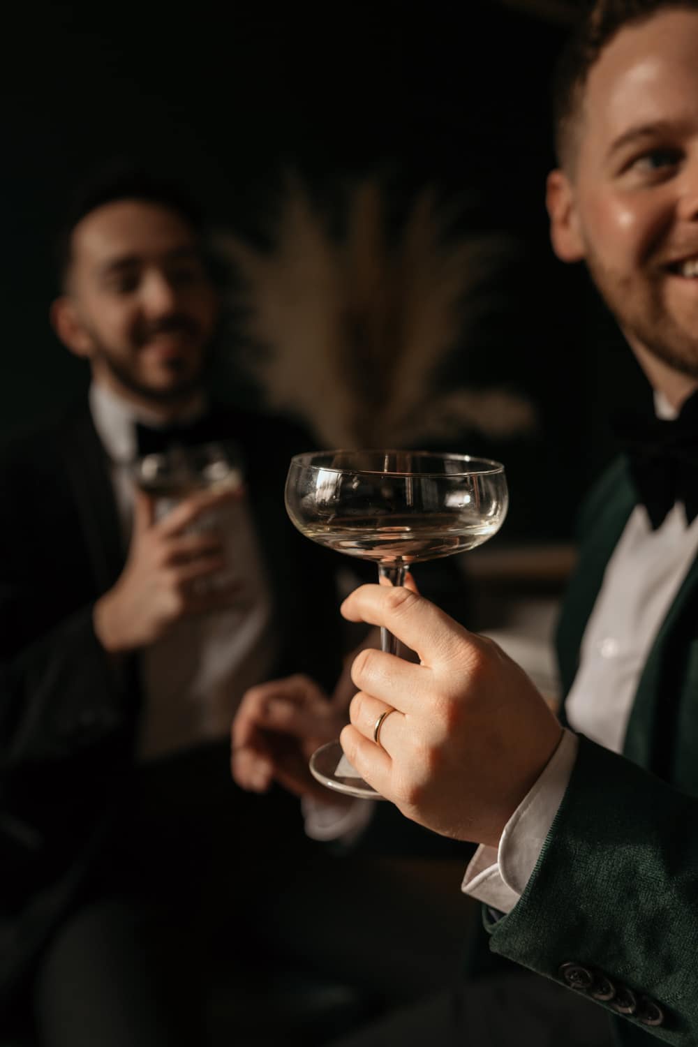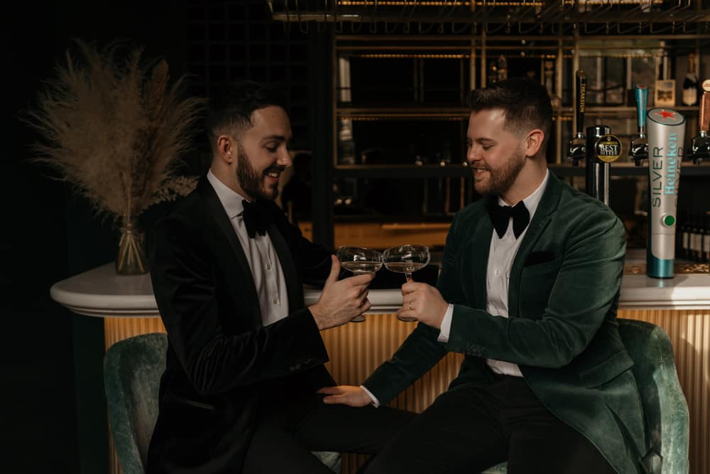 If you want to recreate this for your own big day, then definitely consider the less is more approach. Re-use elements of the styling throughout your day and champagne is always a winner! I also just love the idea of taking time as a couple together, raise your own intimate toast at the bar, together as a newly married couple.