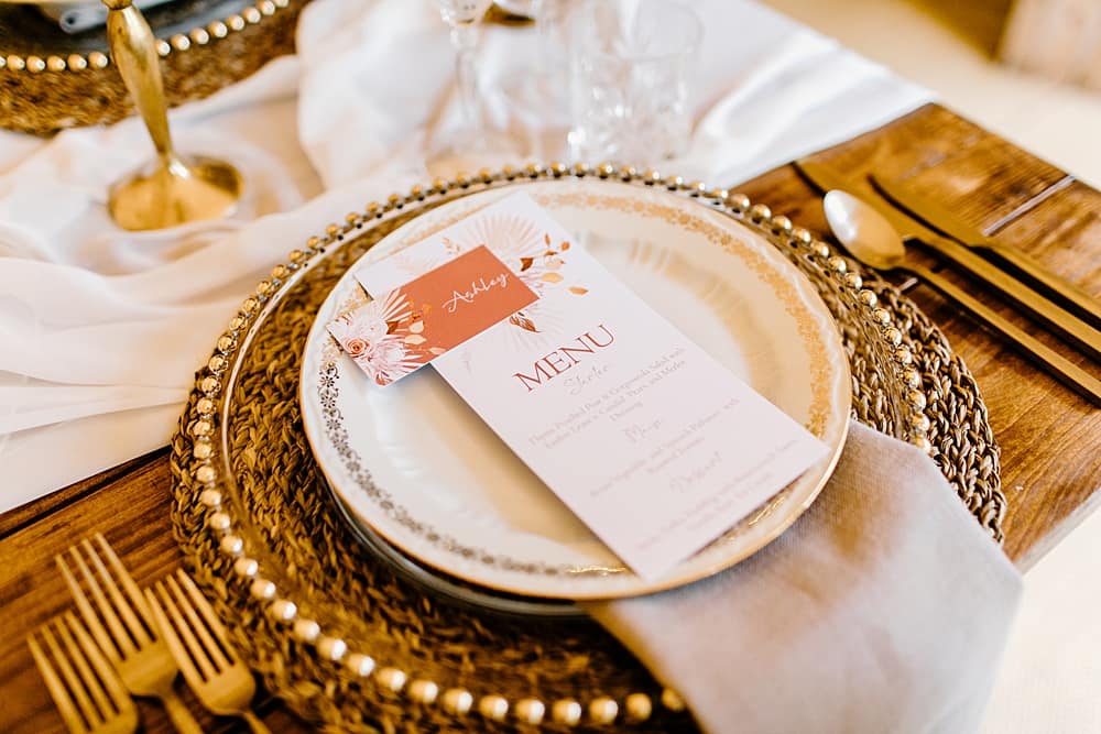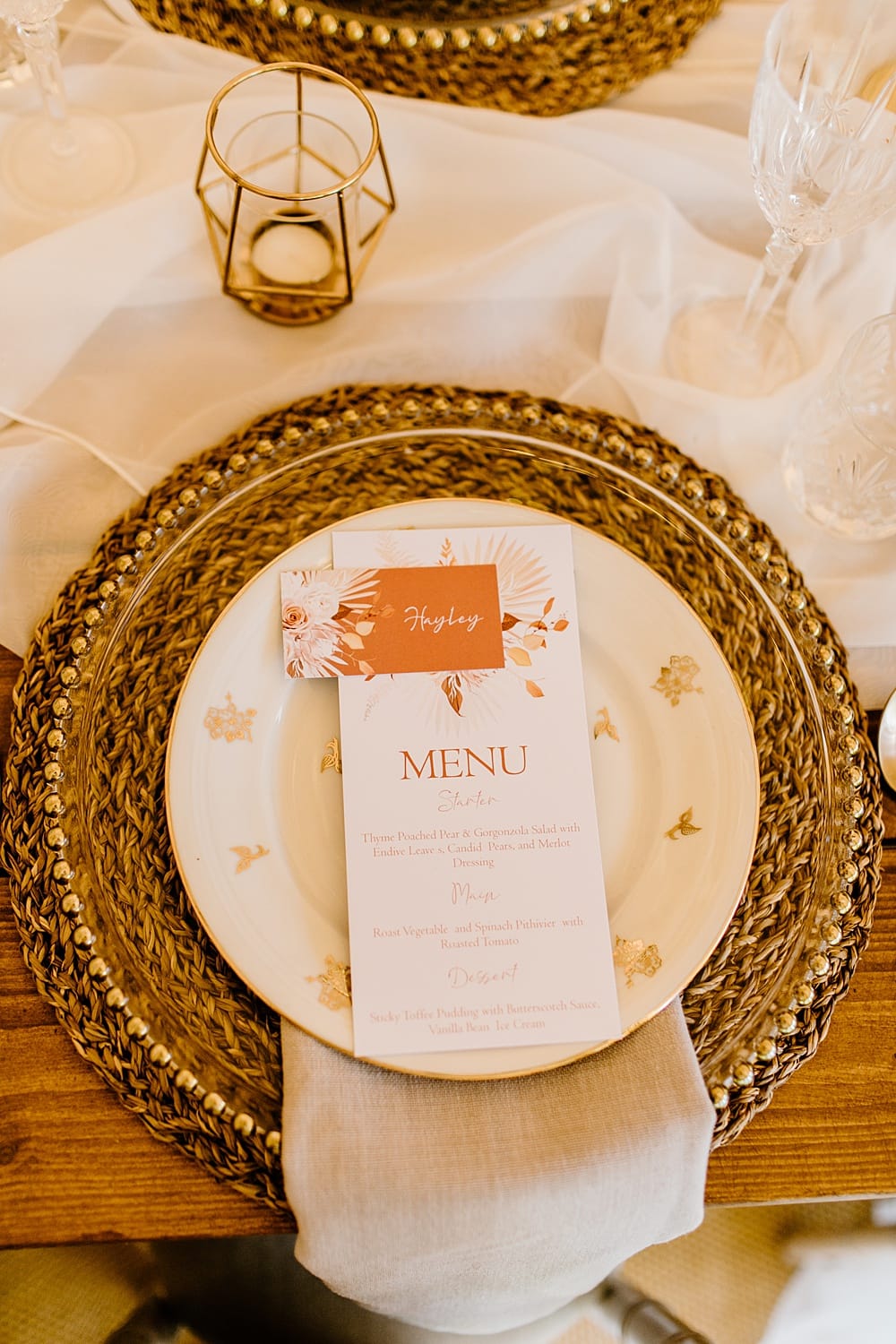 Bellapeach Creative‘s use of colour in her stationery really helped to enhance the subtle pops of terracotta and brought warmth to the set. She included illustrations of the florals used in our arrangements which really tied the whole look of the shoot together.