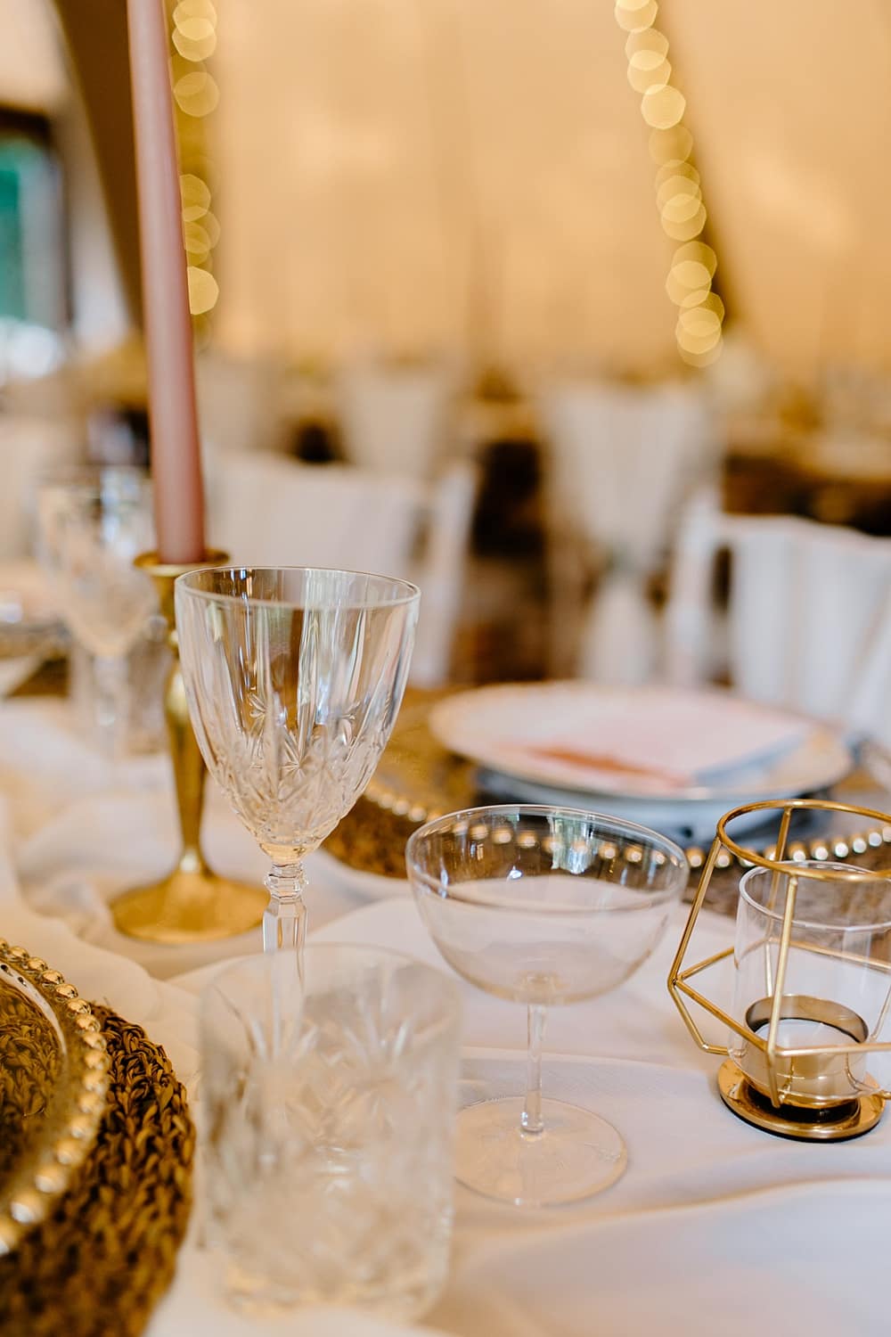 Old barrels, crates, distressed milk churns, gold photo frames, hurricane vases, log slices, suitcases and apothecary bottles helped to enhance the rustic vibe. These were provided by Simply Borrowed Wedding Hire and just worked so well in our tipi setting alongside the elegant decor.