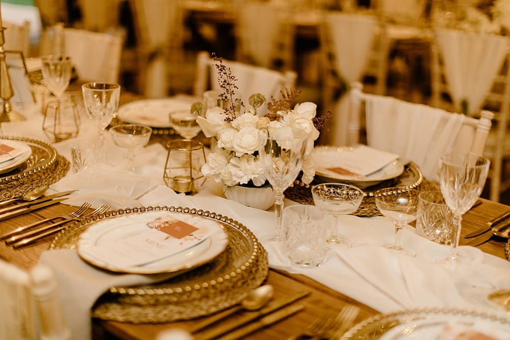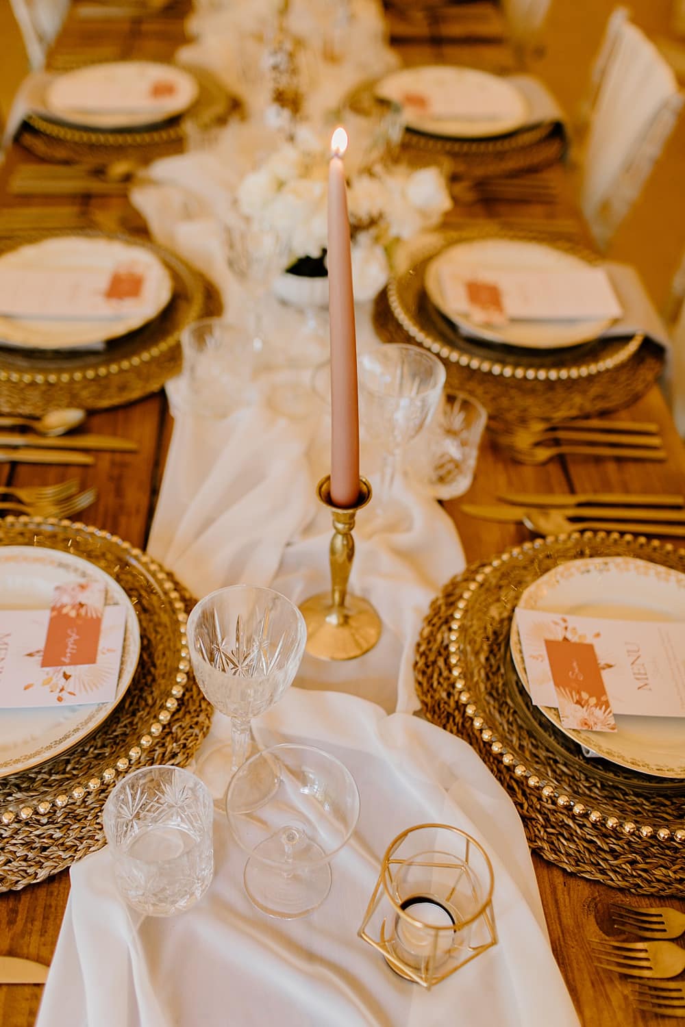 This styled shoot took place in October when the autumn leaves adorning the ground really managed to enhance the colour scheme of the shoot, bringing the rustic vibe to life. ‘Rustic elegance’ was the concept for this editorial so we used tones of white, creams, golds and terracotta for the palette.