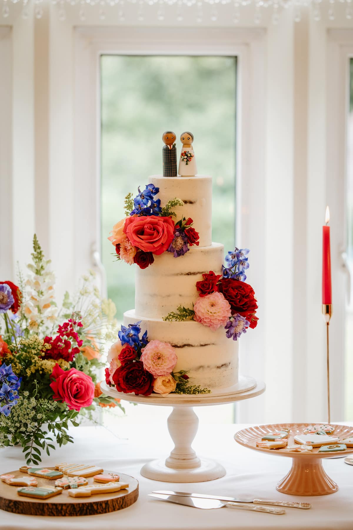 We had Roh’s favourite red velvet cake for all three tiers! Lovingly made by Harriet at Not Just Cake. The cake had a simple semi-naked buttercream and was decorated with real flowers from The Rambling Rose. To top it, we had a little personalised ‘Rohan & Ruth’ peg.