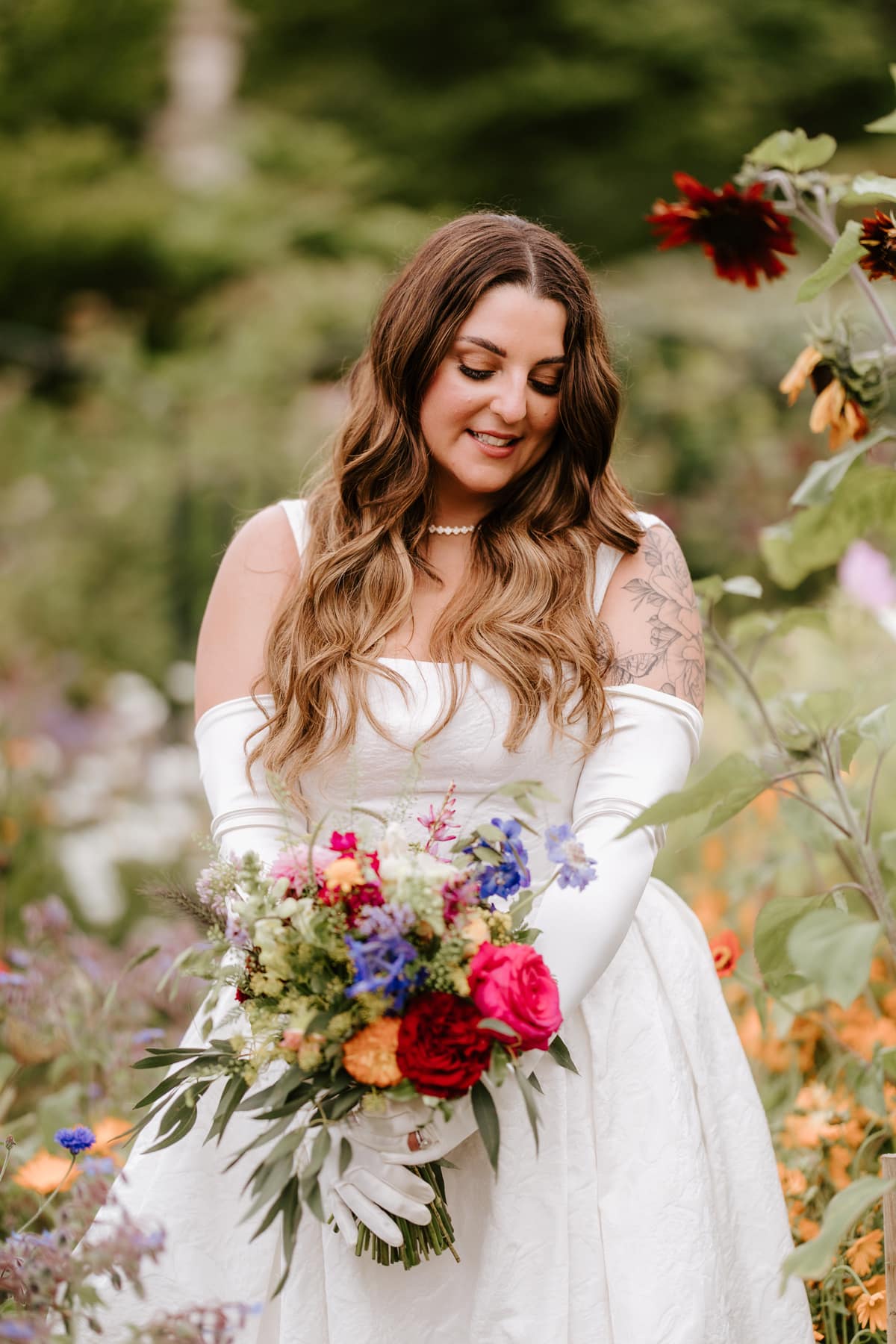 Their day was a beautiful blend of wild, whimsical florals, heartfelt personal touches, and a vibrant atmosphere (including a nod to their almost wedding destination). Their advice? Enjoy the love around you—it’s what truly makes the day special.