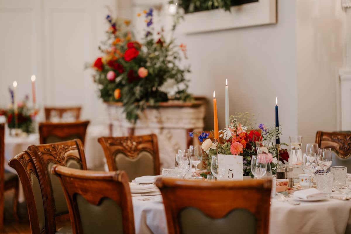 Our florist was The Rambling Rose, and Hannah was amazing. We wanted the decor to focus on the seasonal flowers on the grounds. The bouquets included snapdragons, dahlias, roses, scabious, peonies, stocks, solidago, and other wild and complementary flowers and foliage. We also gifted our flowers (to be used as clippings) to Berwick’s Groundskeeper, Robert, so they have a permanent home there.