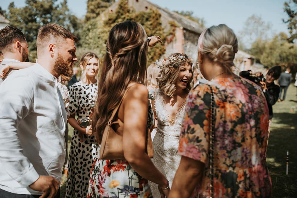 My wedding dress was from The Wedding Club in Birmingham, designed by Pronovias, with a separate Rue De Seine slip that gave it a boho vibe. I initially went into the shop looking for a specific dress from Rue De Seine, but after trying it on, I felt it didn’t suit me. However, I stumbled upon the perfect dress on the sale rail and paired it with the Rue De Seine slip to achieve the silhouette I wanted. The in-house seamstress did an amazing job of recreating the slip. I wore a headpiece by The Floralistas, shoes by Paradox London, and carried a ‘See by Chloé’ bag. Saskia at Sass + Co did my hair and makeup, while the bridesmaids wore dresses from Topshop and ASOS.