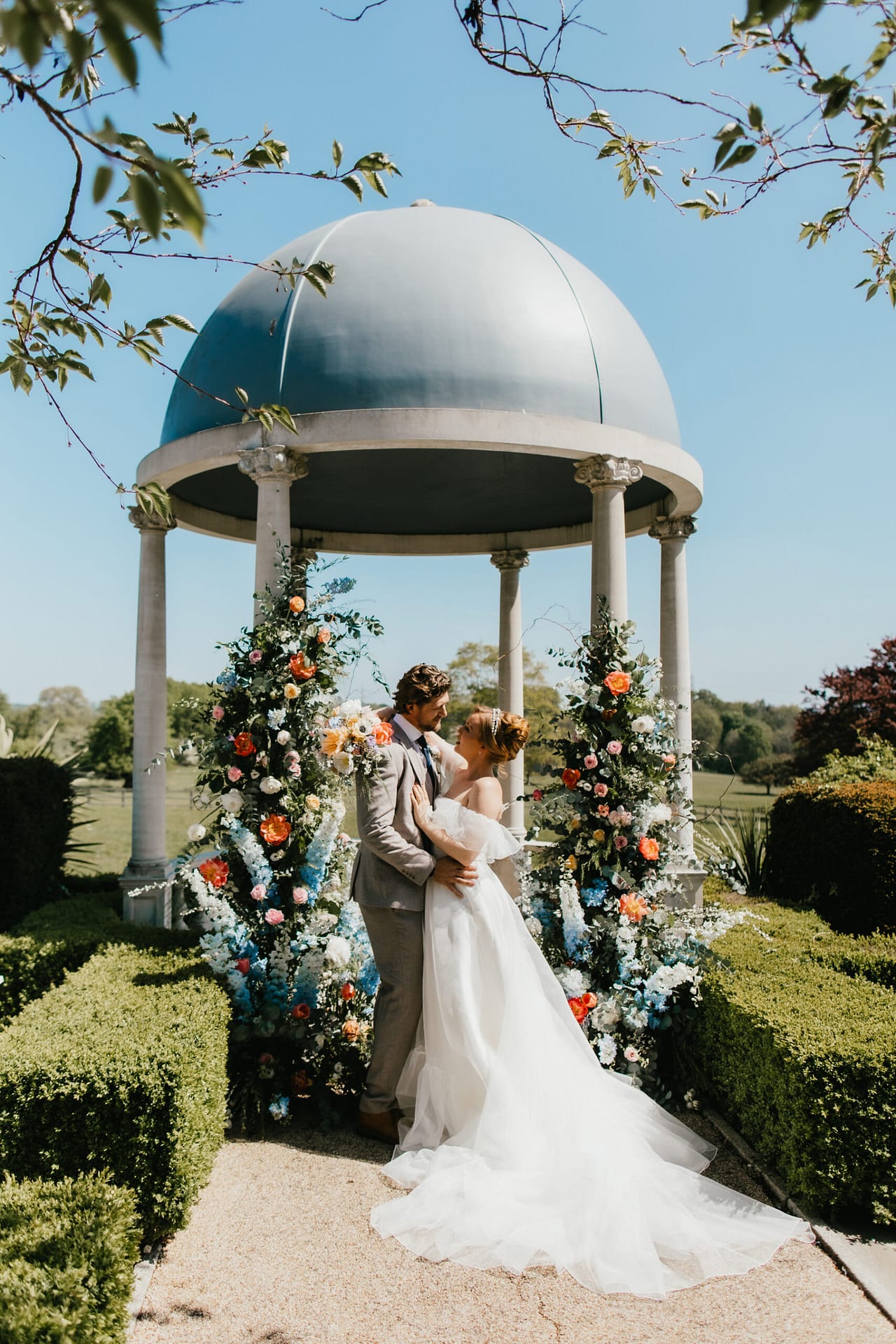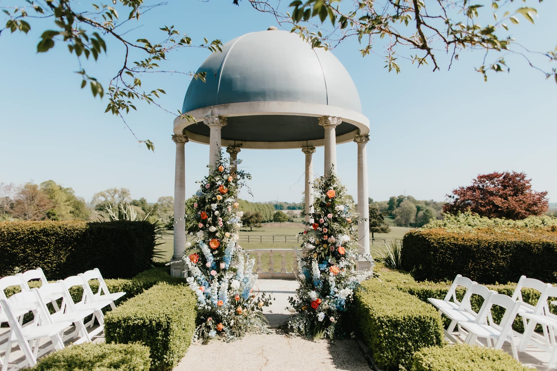 The dome at Froyle Park is always a show-stopper, but adorned with blooms like these? It becomes something truly special. Outdoor ceremonies here feel cinematic; the structure frames the landscape beautifully and offers an incredible backdrop for portraits and group shots.