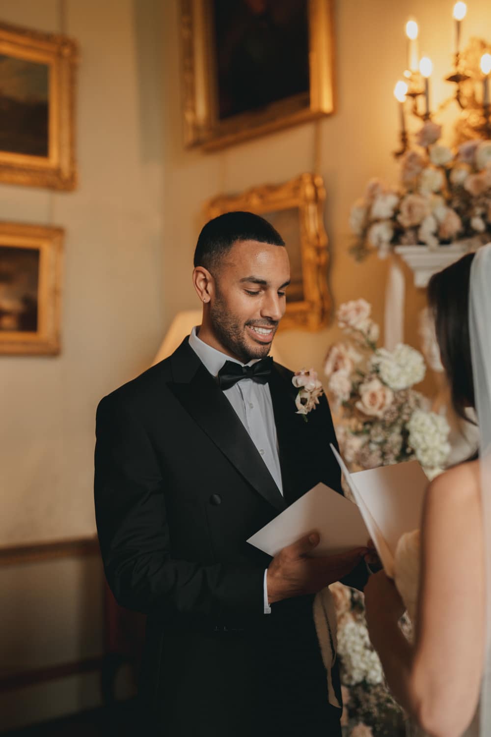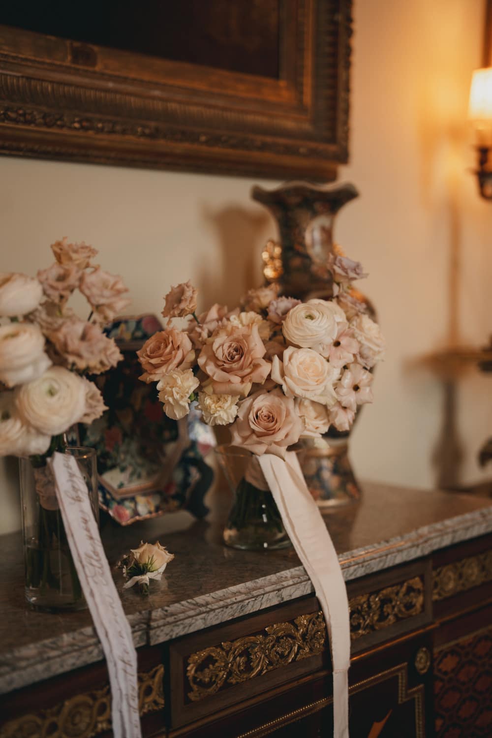 Combining modern, detail-focussed styling, grand floral displays, and warm, romantic colours, today’s feature guides couples through scenes from their perfect wedding day: from bridal prep in the stunning bridal suite to an intimate wedding ceremony in the Drawing Room and finally to a magical wedding dinner surrounded by abundant flowers and art.