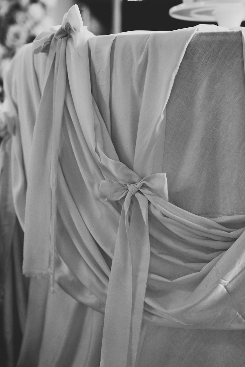 We featured two beautiful Mara Marie Bridal gowns for SOMERLEY, with Megan changing ahead of the cake-cutting to reflect a real-life bridal outfit change. The first gown was ‘Payton’, a gorgeous satin-face organza gown with a floral screen printed design. We particularly loved the hand-draped bodice and slit. We paired this with a veil from Rebecca Anne Designs, a Cara necklace from Kiri & Belle, micro moissanite hoops, and the Harper engagement ring from JUNI. The second gown, photographed in the tablescape and cake-cutting scene, was ‘Dorset’. It features 22 metres of hand-ripped satin-faced organza and a ribbon bow around the waist.