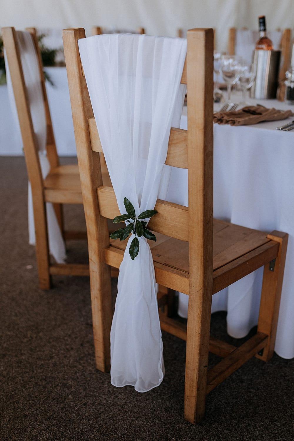 I wouldn’t say we really had a theme as such, but it was very relaxed boho/ rustic. We kept the ceremony very simple with Idyllic Days doing chair decor and I added some vases with pampas grass in to go along the aisle. For the dinner centerpieces, I topped a log slice with a macramé jar and some dried flowers in bottles. I am a big believer is less is more so I really didn’t want huge centerpieces where people wouldn’t be able to talk over dinner or anything that took away from the stunning views of the Ferry House.
