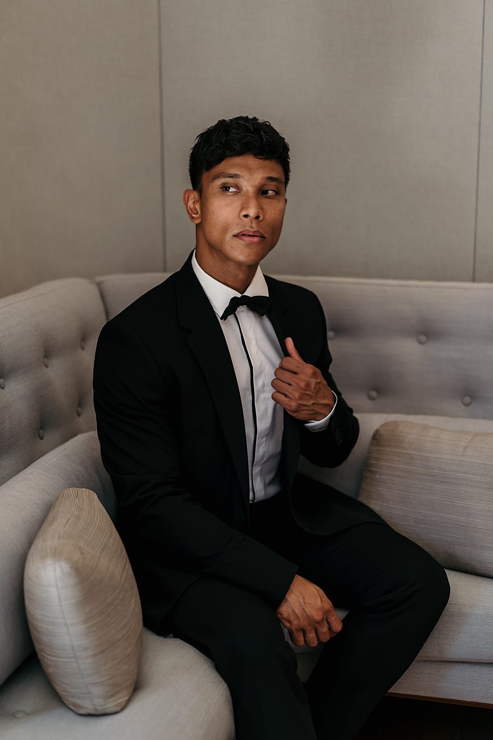 Our groom was dressed in a tailored suit from Hugo Boss, which we kept simple and casual to reflect the venue and step away from the “traditional” groomswear we still see in many wedding editorials. We want to show couples how they can be fashionable whilst looking smart at the same time.