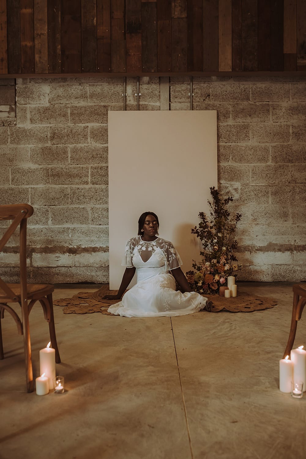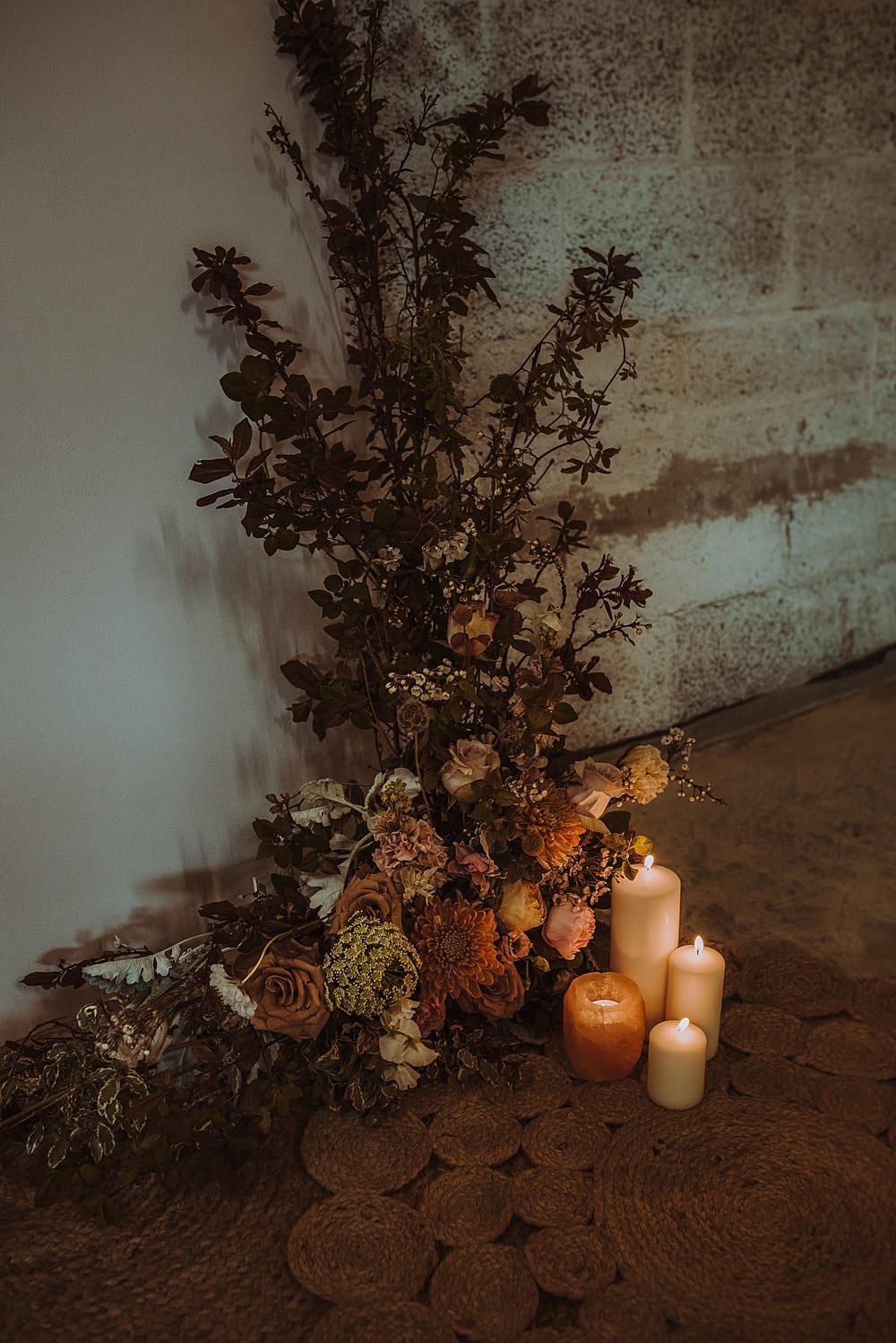 Working with Rachel from Untamed Florals was such a privilege. From the very start she was invested in understanding the palette and theme of the shoot. We went back and forth on the floral palette and how best to work the brighter colours of the palette with the moody vibe of the barn. On the day she even incorporated fresh foliage from the venue to enlarge and elevate the ceremony and lounge area arrangements and it all looked so perfect!