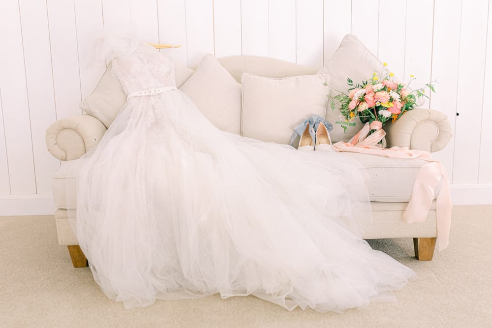 With its whitewashed walls and ceiling, and the most stunning barn doors, The White Barn in South Petherton offers a charming blank canvas for wedding couples to put their stamp on their wedding day without being restricted by busy patterned carpets and coloured walls. The barn is both rustic and elegant and offers old-world romance in the heart of the countryside in a setting that didn’t compete with the colourful palette of this shoot.