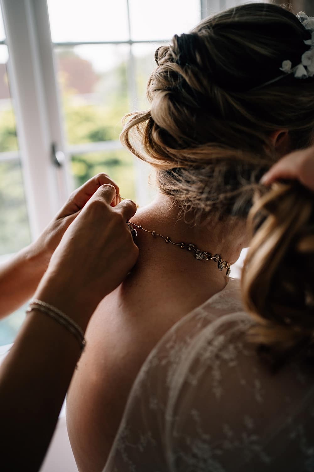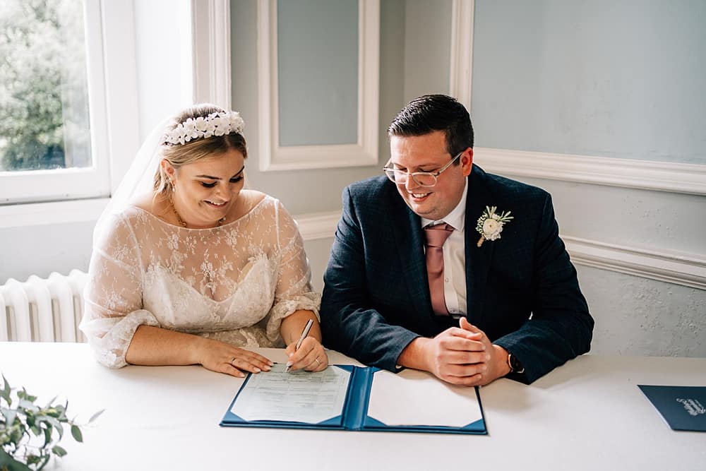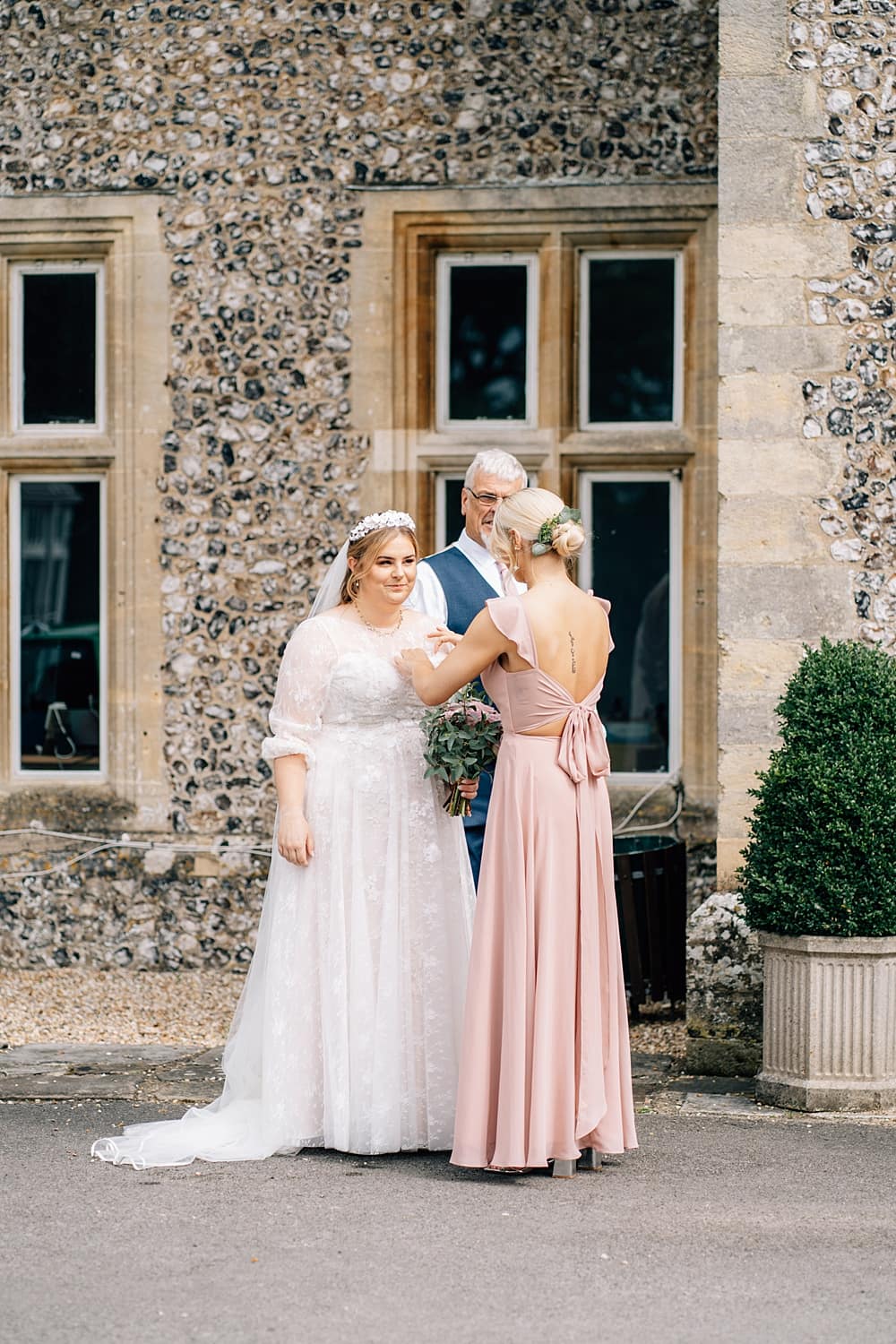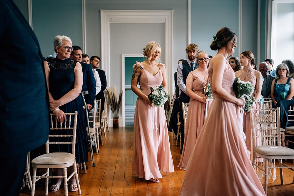 When looking for a dress I wanted something that felt light and was easy to move in but was still quite bridal. I like that the dress was not completely white, the underskirt is pink and it has an almost ethereal feel. I chose pink bridesmaids dresses because the colour really suited all of my best women. I wanted them to feel great on the day so I let them choose their own style of dresses and shoes but kept the colour and hair the same. The groom’s suit also had pink in it and he had the wedding date embroidered on the inside of his jacket.