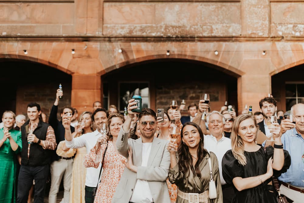 Following the ceremony, Thomas and Kayla were welcomed as the new Mr and Mrs Smyth down the Castle steps, complete with a beautiful confetti toss from their guests. They then popped some champagne, poured it into a magnificent tower, and shared speeches on the terrace. They were shaded from the summer heat under a beautiful stretch tent.