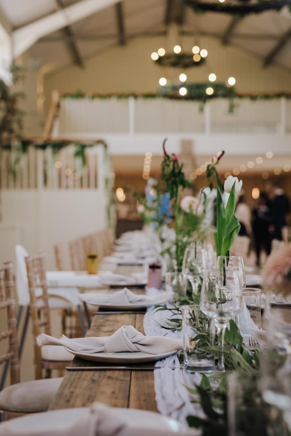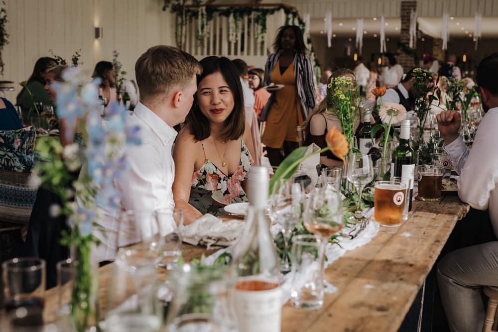 Tom and Anita’s vision for their wedding was clear: they wanted a relaxed, inviting, and timeless day. They chose not to adhere to a specific colour theme, opting for multi-coloured flowers to inject a burst of colour into the decor and bouquets while keeping everything else neutral. Personalize in Newport brought their vision to life with beautiful table decorations, venue decor, and signage that created an inviting atmosphere. East Afton Farmhouse’s natural beauty provided the perfect canvas for their decorations.
