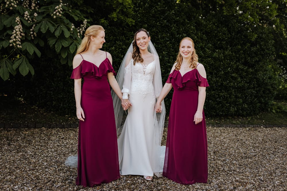 Anita’s bridesmaids wore dresses from Bridal Treasures, choosing a rich burgundy colour that added a touch of warmth to the day. The best women in the groom’s party sported tailored trousers from Moss Bros and champagne tops, perfectly coordinated with the groom’s tie and pocket square.