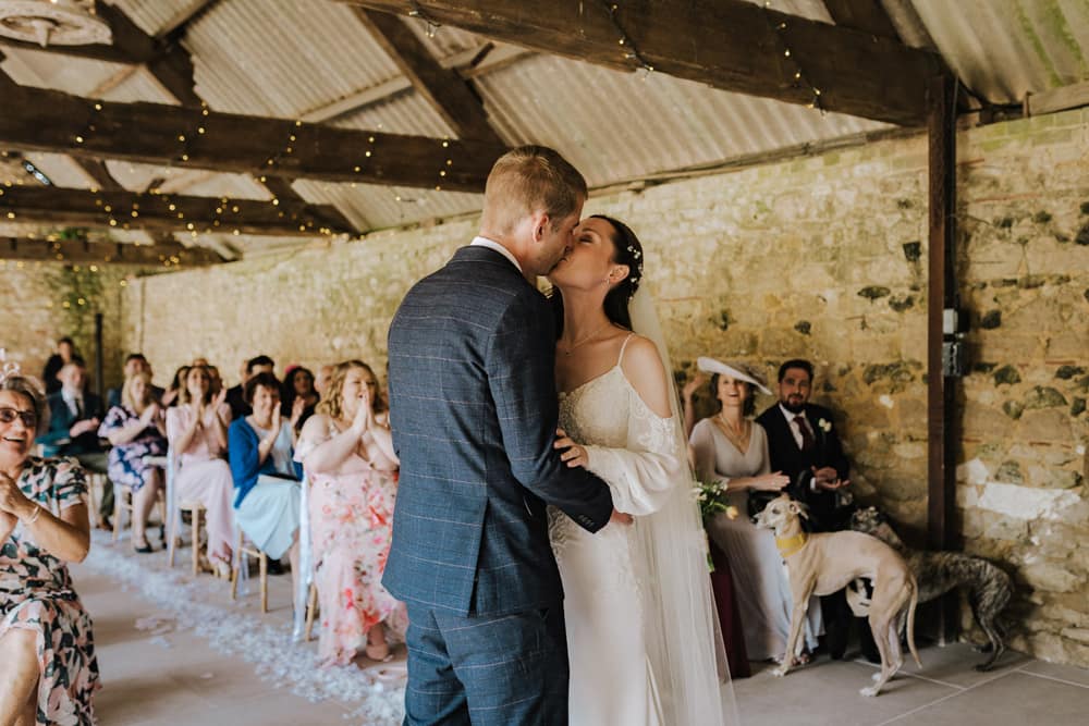Welcome to the wedding of Tom and Anita, who got married in May at East Afton Farmhouse on the Isle of Wight. It’s always a pleasure featuring this destination wedding venue, which bursts with character and charm, and T+A’s big day is no exception. A beautifully relaxed vibe ran throughout, representing the couple perfectly, including spring blooms, a soft, neutral colour palette, delicious cakes, and their gorgeous four-legged guest of honour!