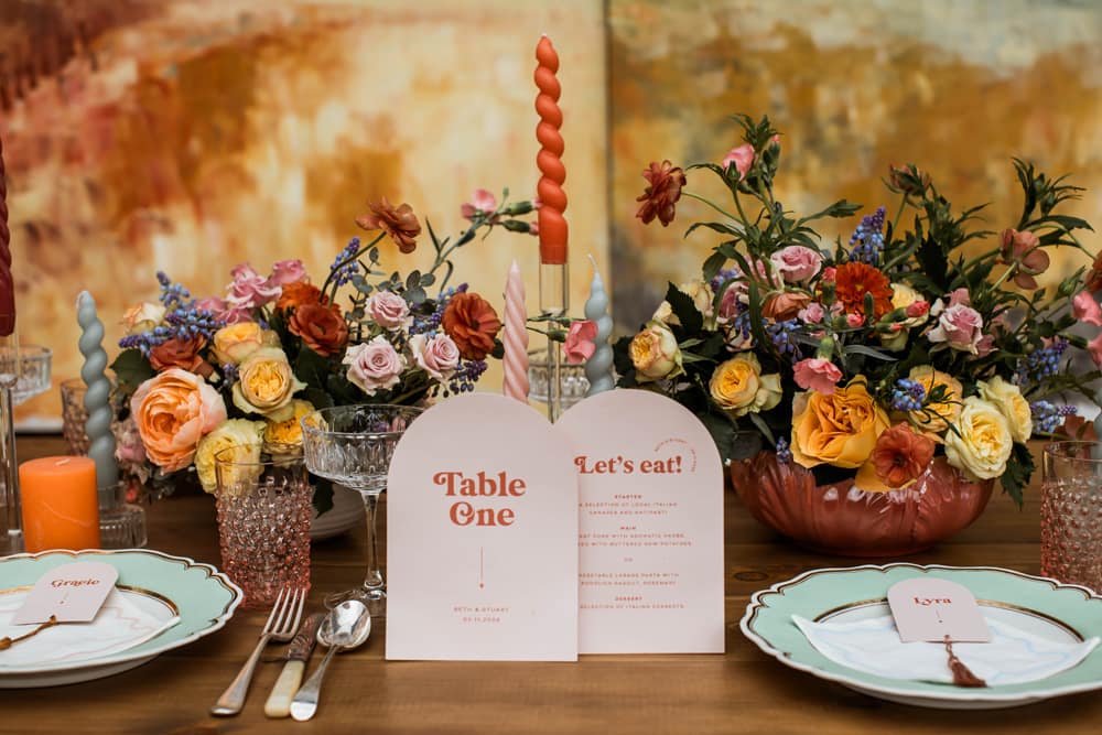 The theme was fun and flouncy, bold and blousy – with a beautiful retro edge. Complete with peachy tones throughout, we love how these colours can take you from early spring through late autumn, making them accessible for many couples.