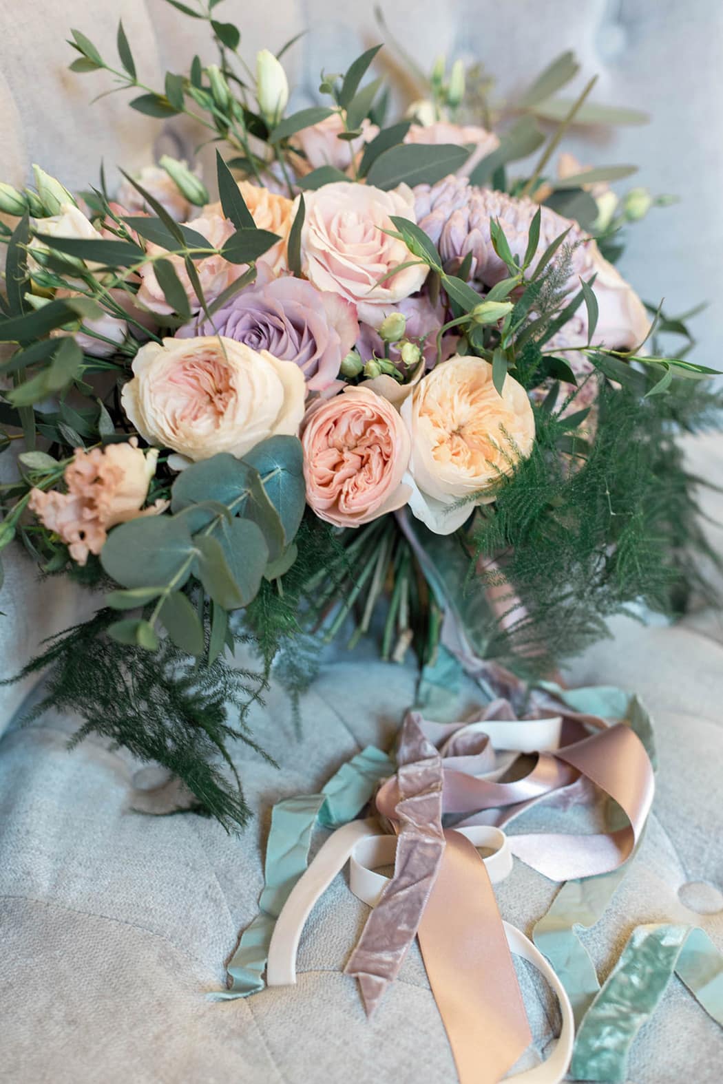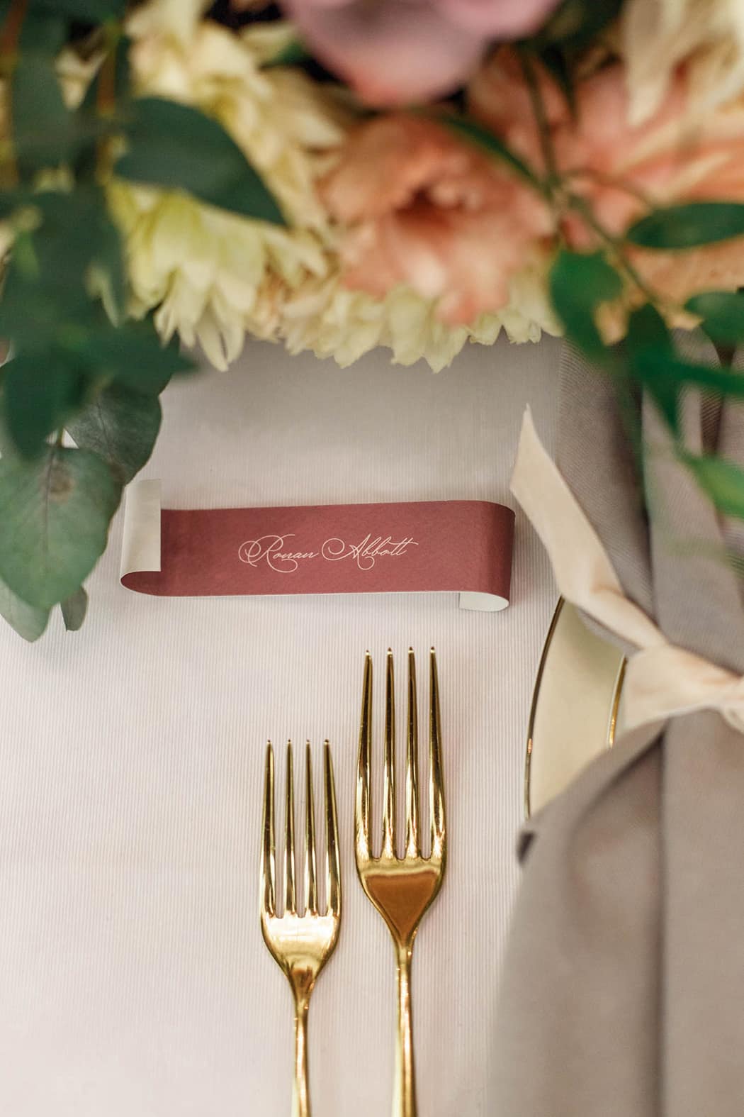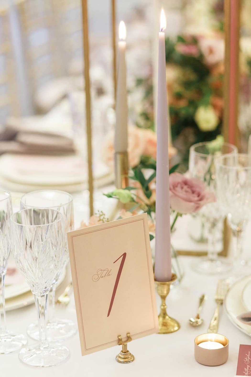 We wanted to create a timeless colour palette and decor that could be used throughout the year. Mauves, soft pinks, moss green, lilac and accents of gold were used to create a sophisticated style that was not particular to any one season.